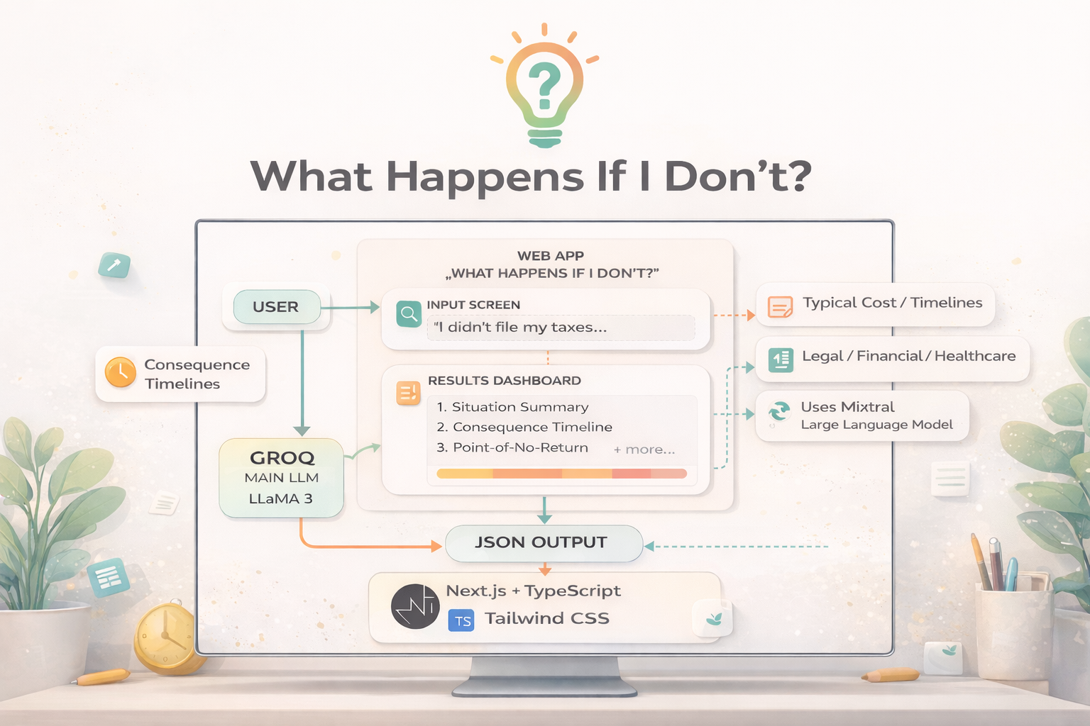 - Groq is used as the primary reasoning engine to generate structured consequence timelines and severity analysis.