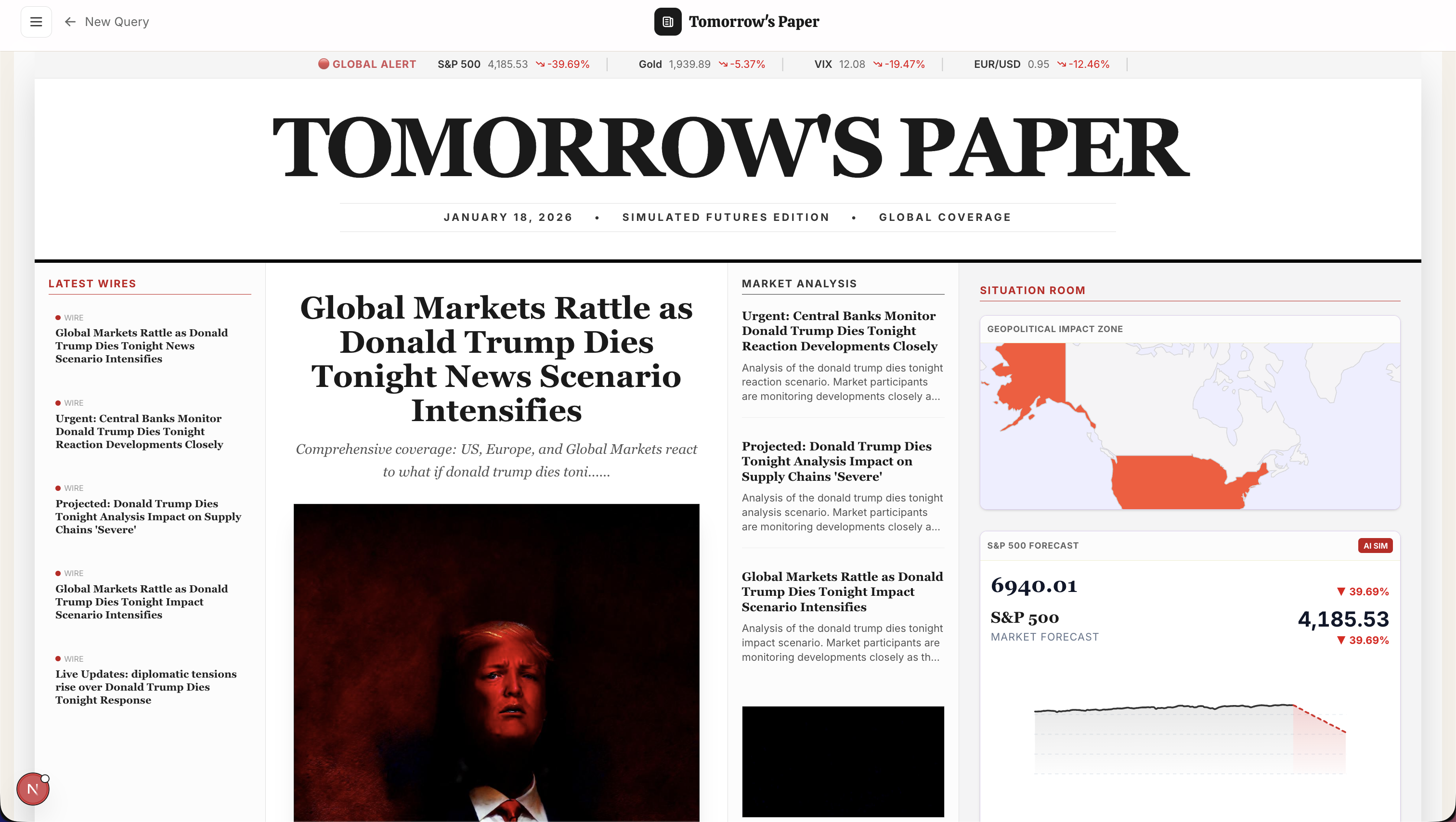Used Yutori web agents to fetch various data from the internet (including taking screenshots), then giving that data to Tonic Fabricate to generate prediction data, headlines to simulate market and news articles of tomorrow.