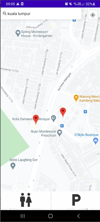 This was built with java on android studio and I used the information available online and on google maps on toilet and parking.