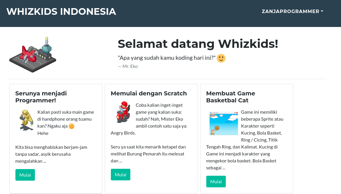 Therefore I built a web based solution for kids, teacher and parents world wide (but mainly focus for Indonesia) to interact in a community of passionate share holder in improving their kids coding skill.