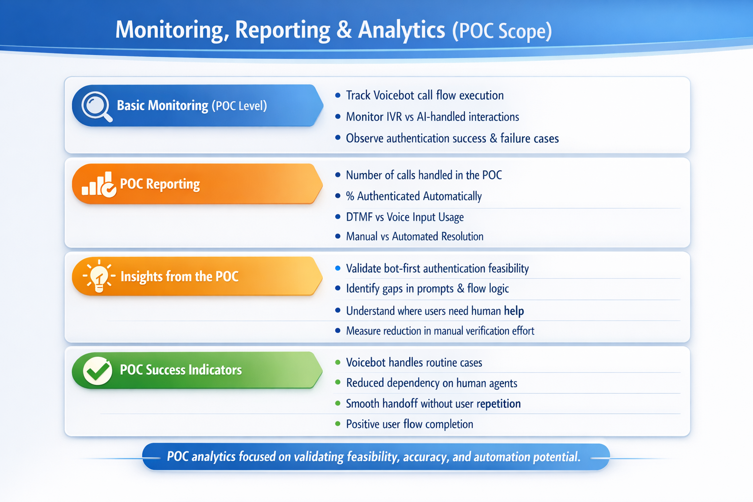 Successfully validated that patient authentication can be handled reliably by a Voicebot Reduced dependency on human agents for routine front‑desk calls Built a hybrid system combining fast IVR logic with AI intelligence Enabled seamless escalation to clinical bots and human reviewers Proved that voice‑first automation can deliver both speed and accuracy in a healthcare setting