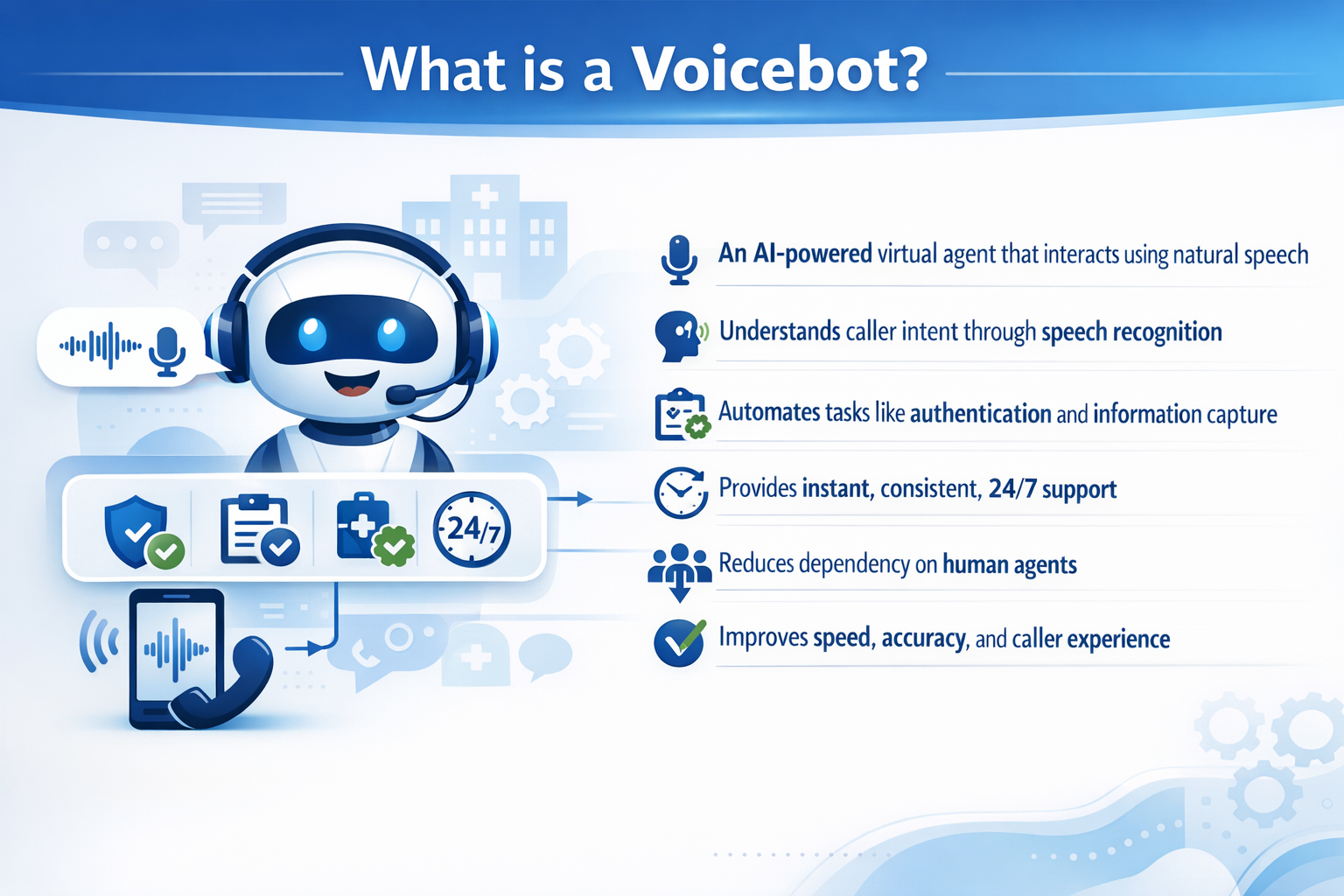 Why Do It Yourself When a VoiceBot Can is a Voicebot designed to automate patient authentication and frontline hospital interactions. The Voicebot: Allows callers to speak naturally or use DTMF keypad input Automatically captures and understands patient information Authenticates patients securely without human intervention Handles routine calls end‑to‑end Seamlessly routes complex or clinical cases to a guided clinical bot or a human agent Instead of acting like a simple IVR, the Voicebot automates the entire front‑door funnel of healthcare communication — reducing wait times, improving accuracy, and delivering a smoother patient experience.