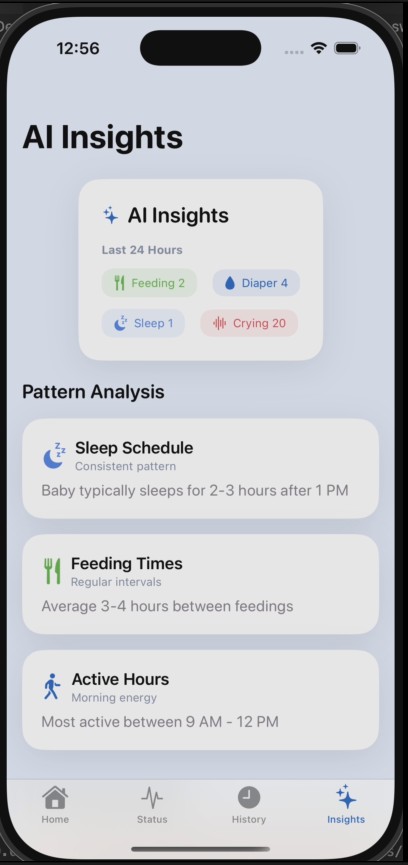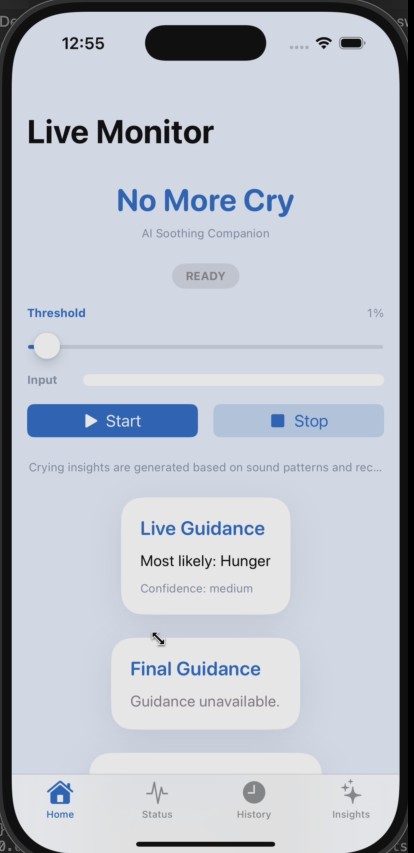 Cry transcription and cause probabilities Clear, confidence-aware next-step guidance Low-latency hints during live recording Continuous personalization via context memory