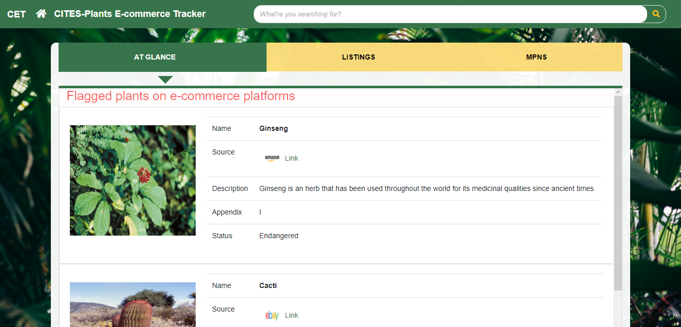 This is a monitoring system that will flag the sale of any endangered plant species on the E-commerce platforms thus creating awareness to the wildlife authority.
