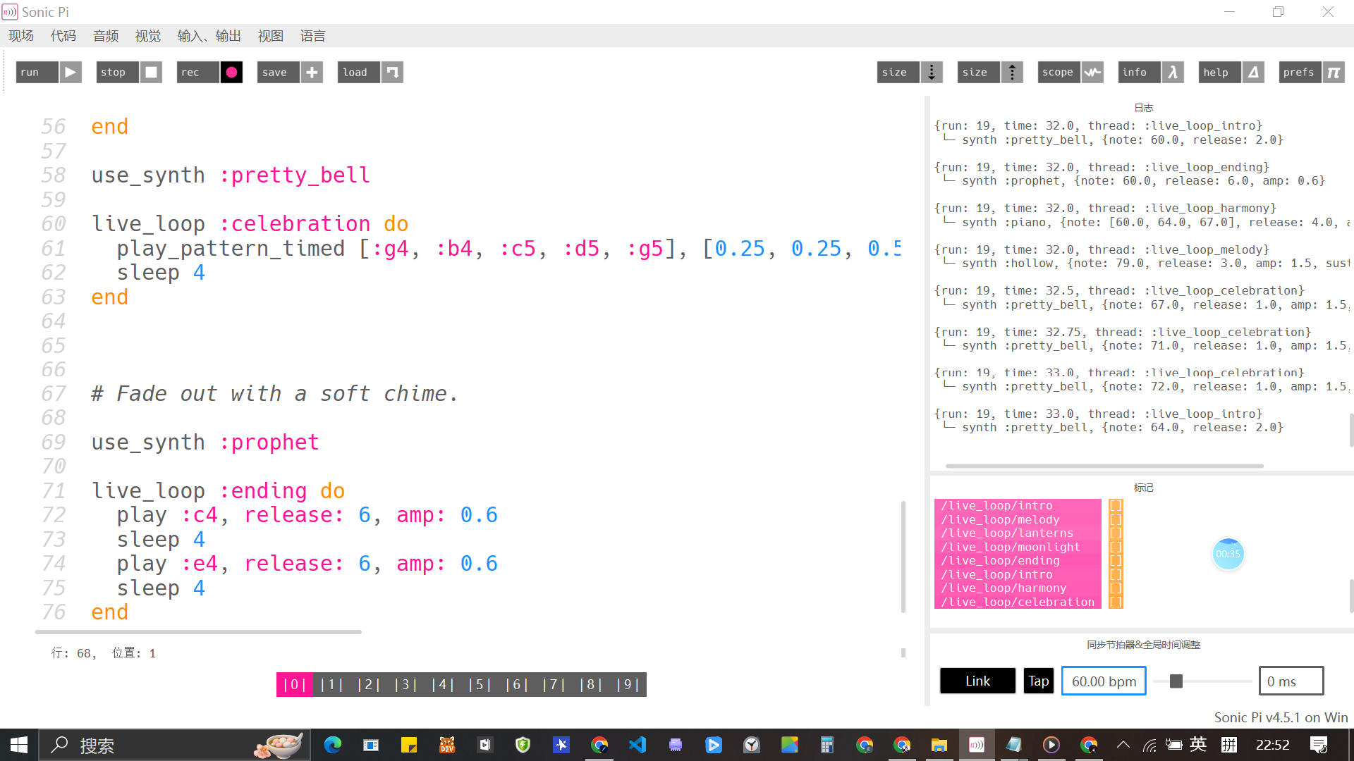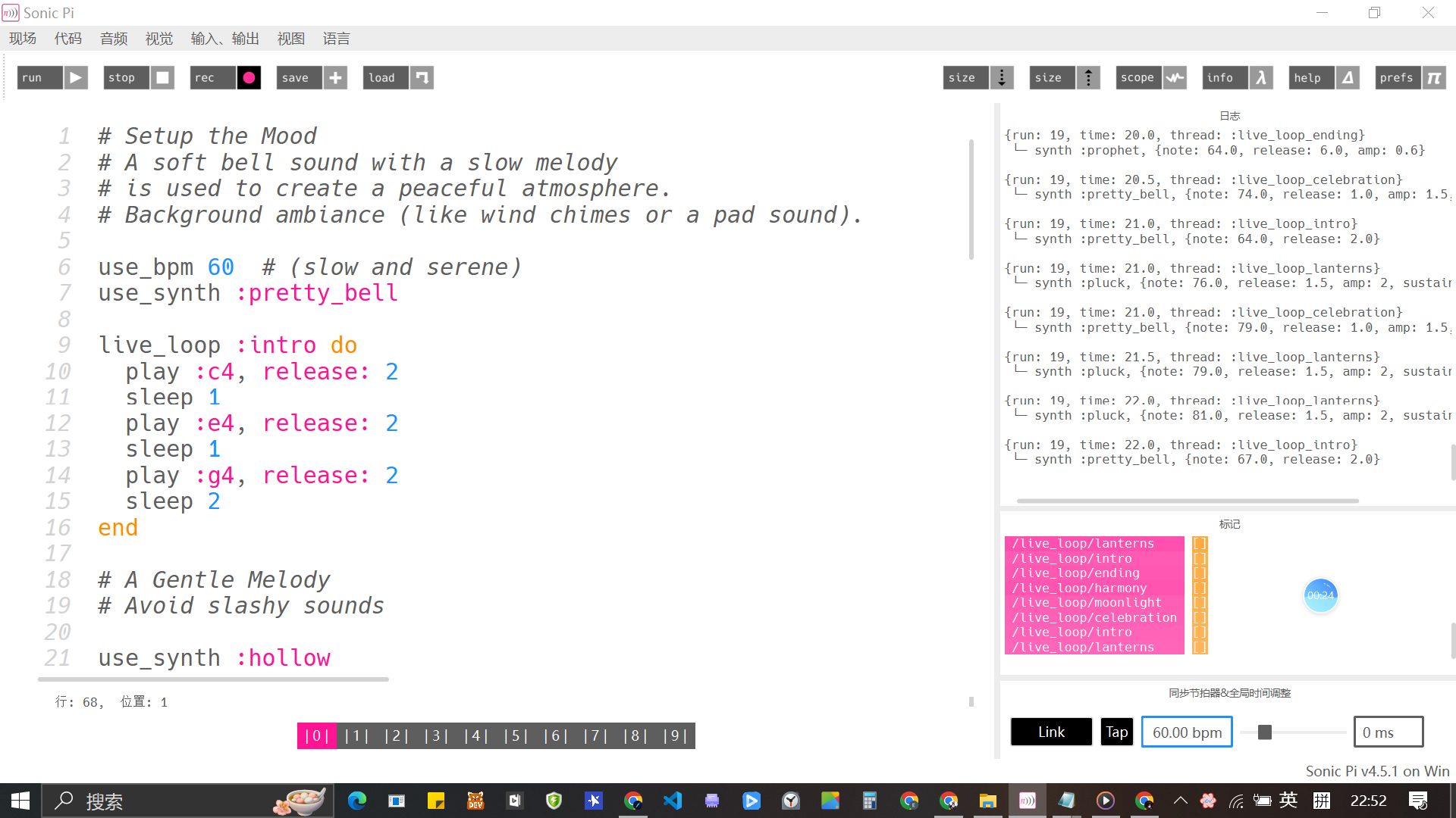 One of the biggest challenges I faced was capturing the essence of peace through sound. It was difficult to balance the gentle rhythms with the need to evoke a strong sense of stillness and tranquility. Another major challenge was learning how to code in Sonia, which was necessary to create the music. It took time to edit the durations of notes and rhythms to ensure the piece felt as serene as possible. But through experimentation, I was able to overcome these technical obstacles.