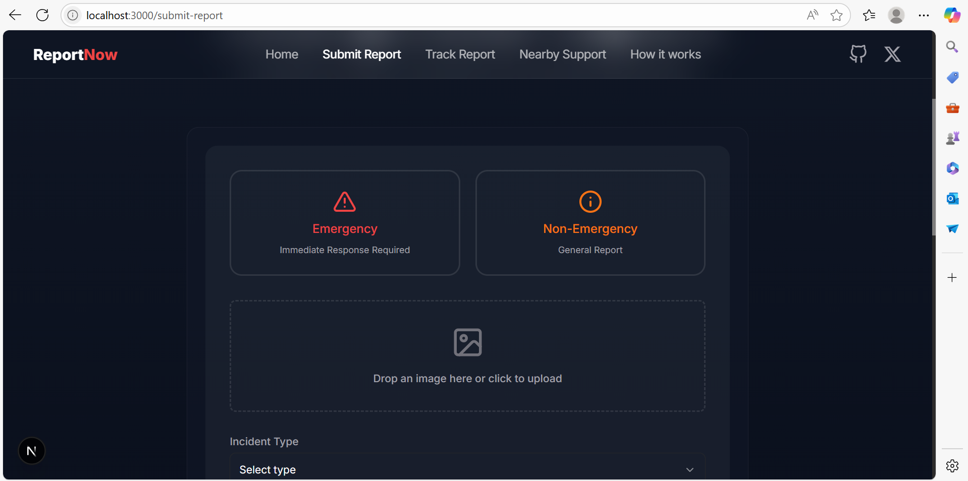 Successfully integrated Gemini AI to generate structured and accurate incident reports from image input Built a fully functional MVP with real-time location sharing and service discovery Dockerized the entire application, making it deployment-ready for various environments Created an intuitive and accessible user interface that balances ease-of-use with advanced capabilities