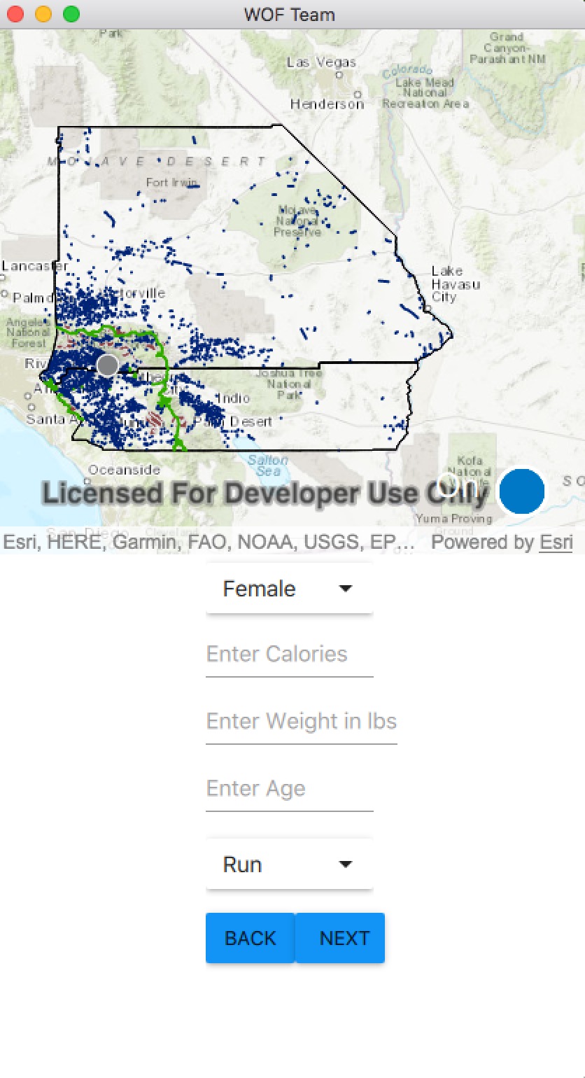 We used App Studio to create the UI and load in the map we made. The map was uploaded to AGOL, where our app pulled it from the url. We then calculated distance needed to travel in order to bur x calories inside the app, and send that distance to Network Analyst. Network Analyst sends back routes that we display to the user.