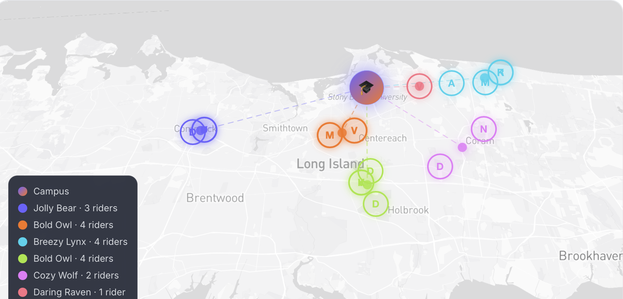 The modern collegiate commute is fundamentally flawed. Every single day, hundreds of Stony Brook University students bleed their limited funds on surge-priced, single-occupancy rideshares. Whether commuting from the LIRR train station, returning from a late-night grocery run, or heading home from the library at 2 AM, students are unwittingly participating in a massive, uncoordinated logistical failure. They travel in the exact same directions, at the exact same times, yet pay individual premium fares while collectively pumping unnecessary carbon emissions into the atmosphere.