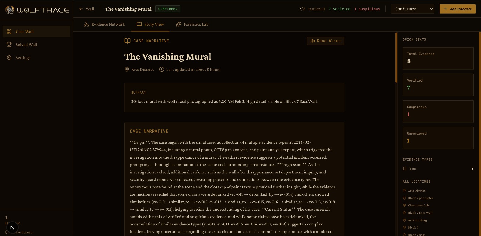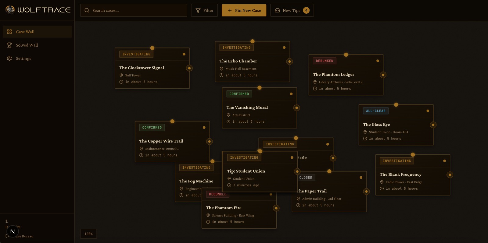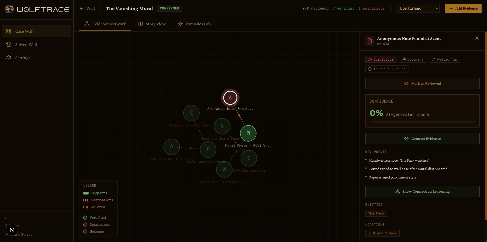 We’re proud that WolfTrace feels immersive rather than administrative. The corkboard Case Wall and interactive evidence network create a unique investigative experience that helps users visually connect information rather than simply manage it.