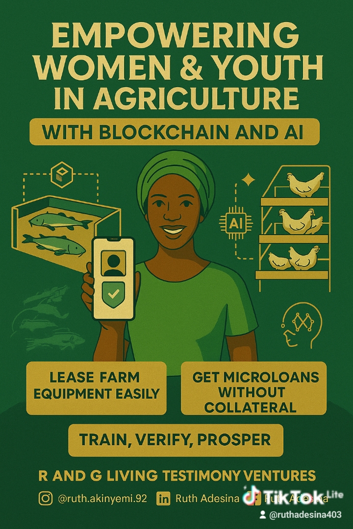 women farmers trained but unable to start businesses due to resource gaps. My blockchain and AI platform delivers transparent loans and smart farm tools via mobile, designed for women in livestock and beyond. o Number of women onboarded. o Volume of loans or equipment accessed. o Income and productivity growth, targeting a 30% increase for 50% of participants. Utilize existing training networks, mobile penetration, and local partnerships to reach users, starting with a manageable pilot.