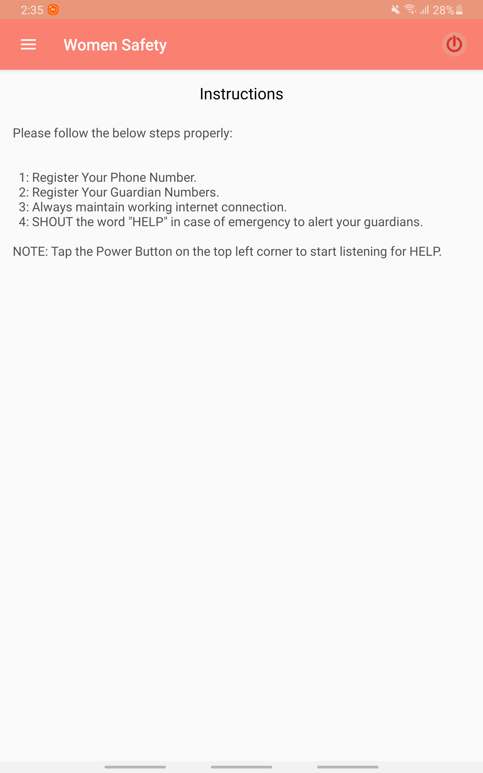 What happens with the Women Safety app... Zara is a working woman who works till late at night in her office. Her friends sent her the link to the Women Safety app and she downloaded it as a safety measure. She departed from her office at 9 PM, she tried to book a cab but none was available. So she decided to walk to the taxi stand from where she will hire a taxi. She was walking, there were not so many people on the road. She enabled the app because she was worried. Suddenly 4-5 men's who were riding their bikes stopped near her. They started by saying some cheap pickup line. But Zara tried to ignore them and increased her speed. But they did not stop... They surrounded Zara. Just like every other human being Zara first screamed to call for help, but sadly no one reached to help her. Then she screamed Help and the app immediately recognized it and sent SOS with her live location to her parents. We all can imagine what happened later. Zara was NOT added to a long list of rape victims because support came on time.