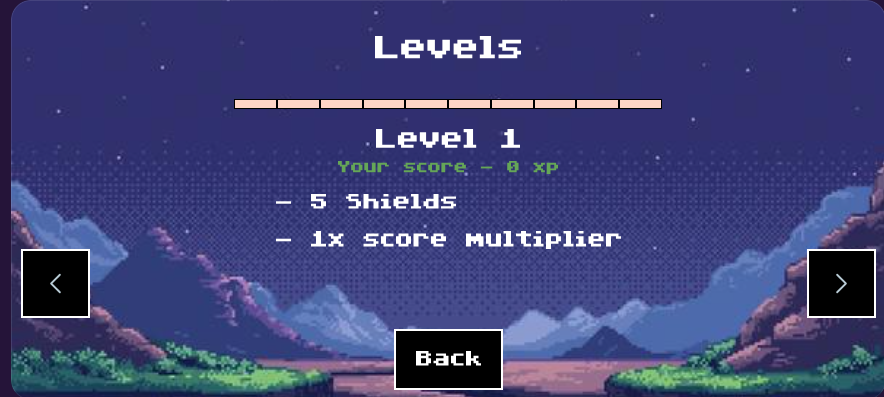 Based on the tries it took to guess the word, you are awarded XP. Gaining XP allows you to level up and unlock more shields and a higher score multiplier. A leaderboard keeps track of all users' XP and allows users to compete with others.