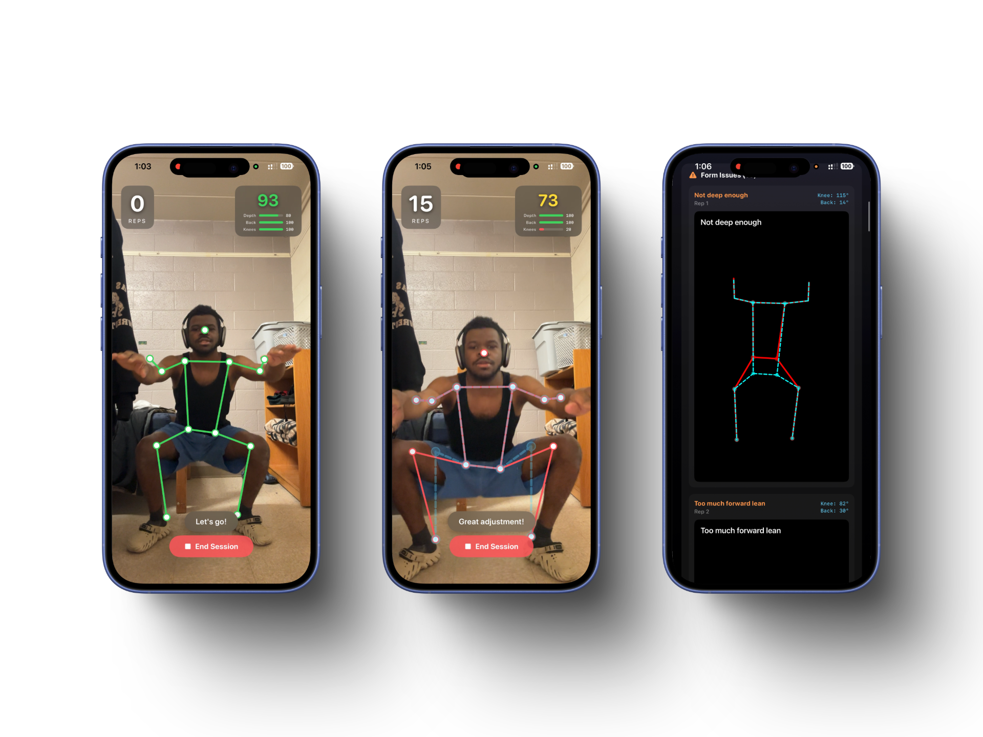 Personal trainers are expensive. Bad squat form causes knee injuries, back pain, and wasted workouts. Most people working out alone have no way to know if their form is correct — until something hurts.