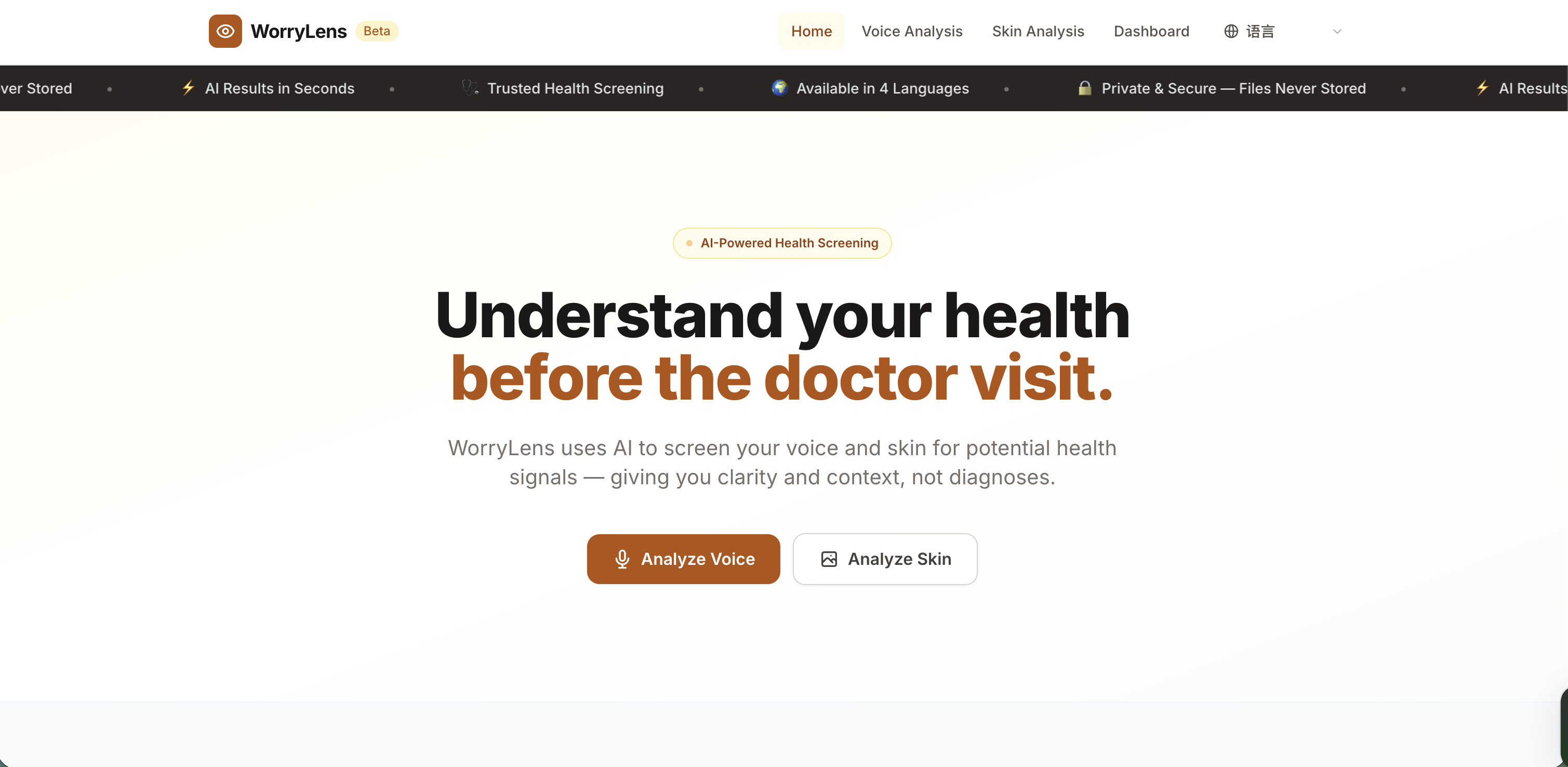 Your voice and skin already contain measurable indicators of stress, fatigue, and potential health irregularities. We wanted to turn those raw signals into something structured, grounded, and actionable—before anxiety takes over.