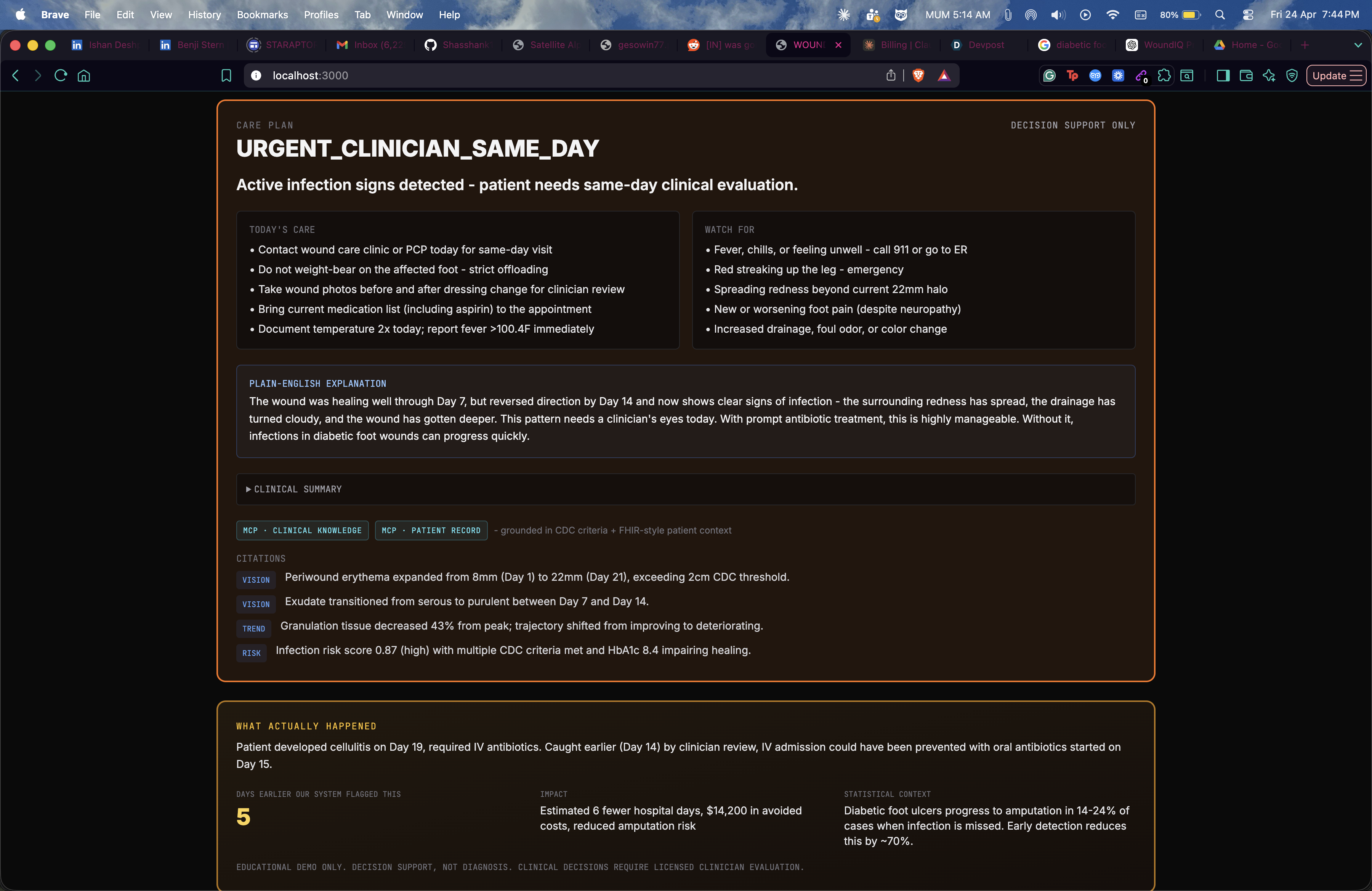 A major challenge in healthcare is that critical deterioration often happens between patient visits. In conditions like diabetic foot ulcers, infections progress silently, and by the time they are detected, patients often require hospitalization or even amputation.