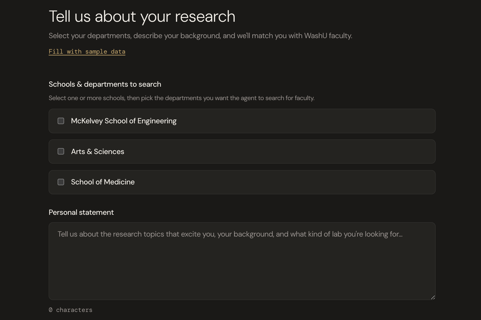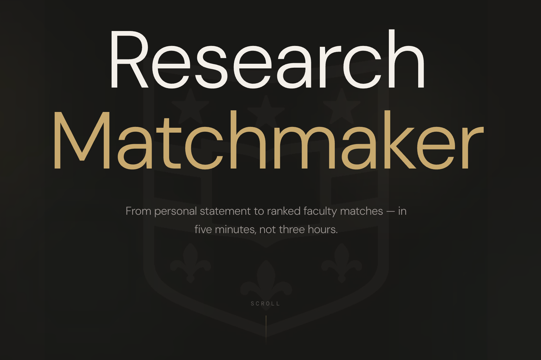 As a team with many friends who want to do research, we know that finding faculty research opportunities at WashU is a frustrating, manual process that takes students 3+ hours per search. Students have to navigate fragmented department websites, parse dense publication histories, guess at lab availability, and cold-email professors with no idea if there's a real fit. Even with prompting LLMs, this process is long and frustrating. This inequity means students without insider connections miss out on high-impact research. We wanted to turn that 3-hour struggle into a 5-minute, AI-powered experience — giving every student equal access to the best-fit research opportunities on campus.