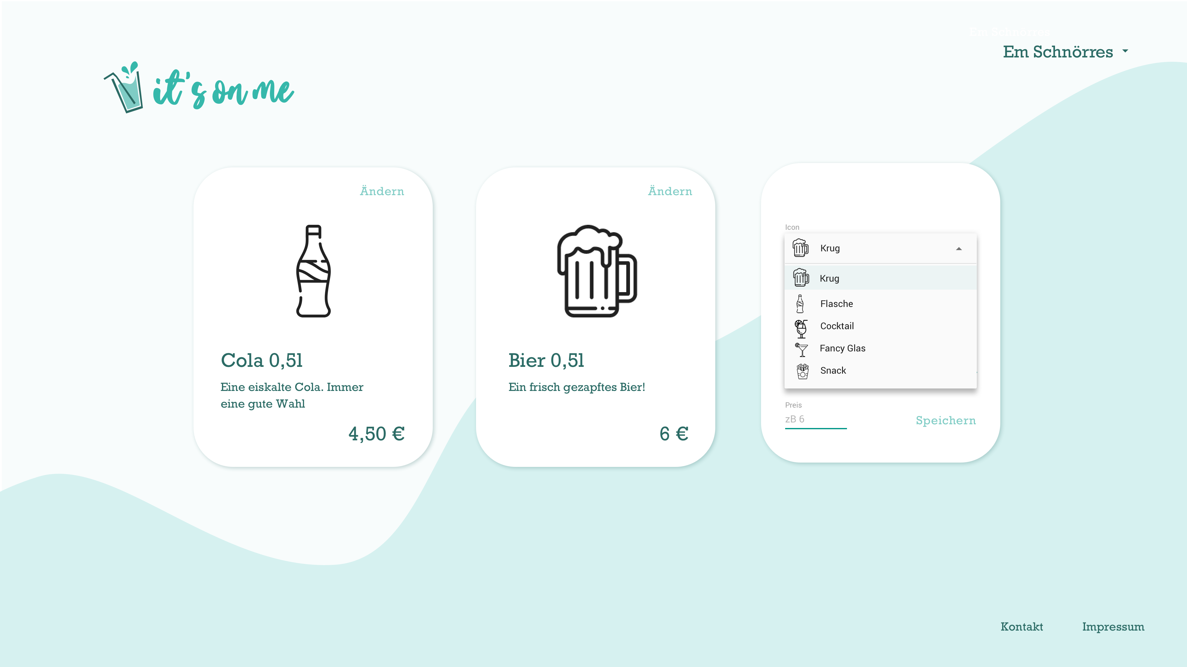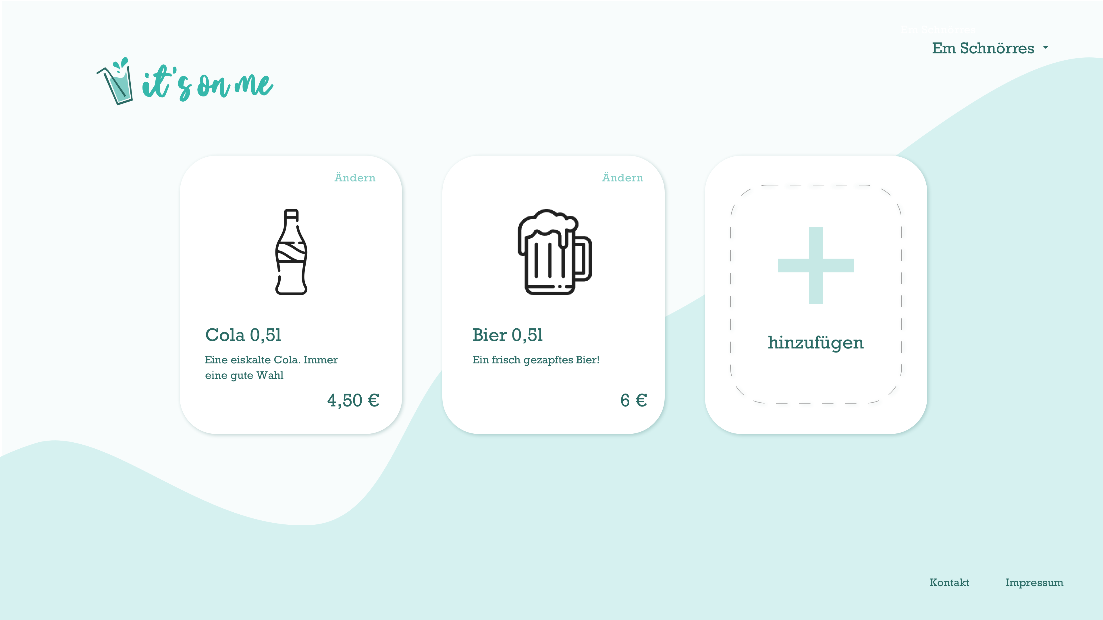 Mit "It's on me" wollten wir eine Plattform erschaffen, welche von Gastronomen und ihren Kunden benutzt werden kann um die Corona-Krise möglichst unbeschadet zu überstehen. Bar-, Club- oder Restaurantbesitzer können sich auf der Website registrieren und ein Profil für Ihr Lokal einrichten. Auf diesem Profil haben die Unternehmer die Möglichkeit einen Teil Ihrer Speisekarte virtuell abzubilden. Kunden, die das Profil Ihres Lieblingslokals besuchen, können für sich oder Ihre Freunde Getränke kaufen.