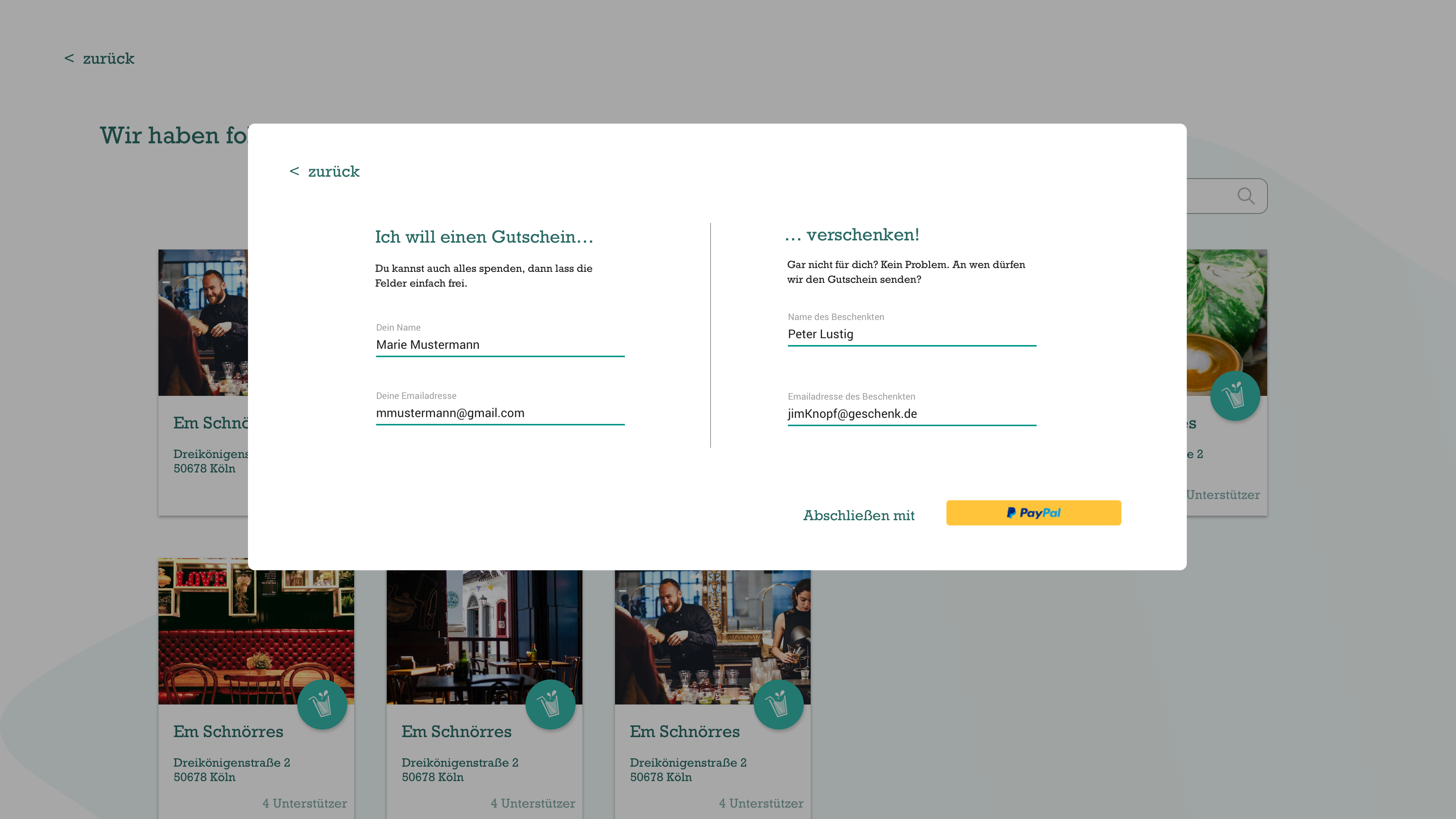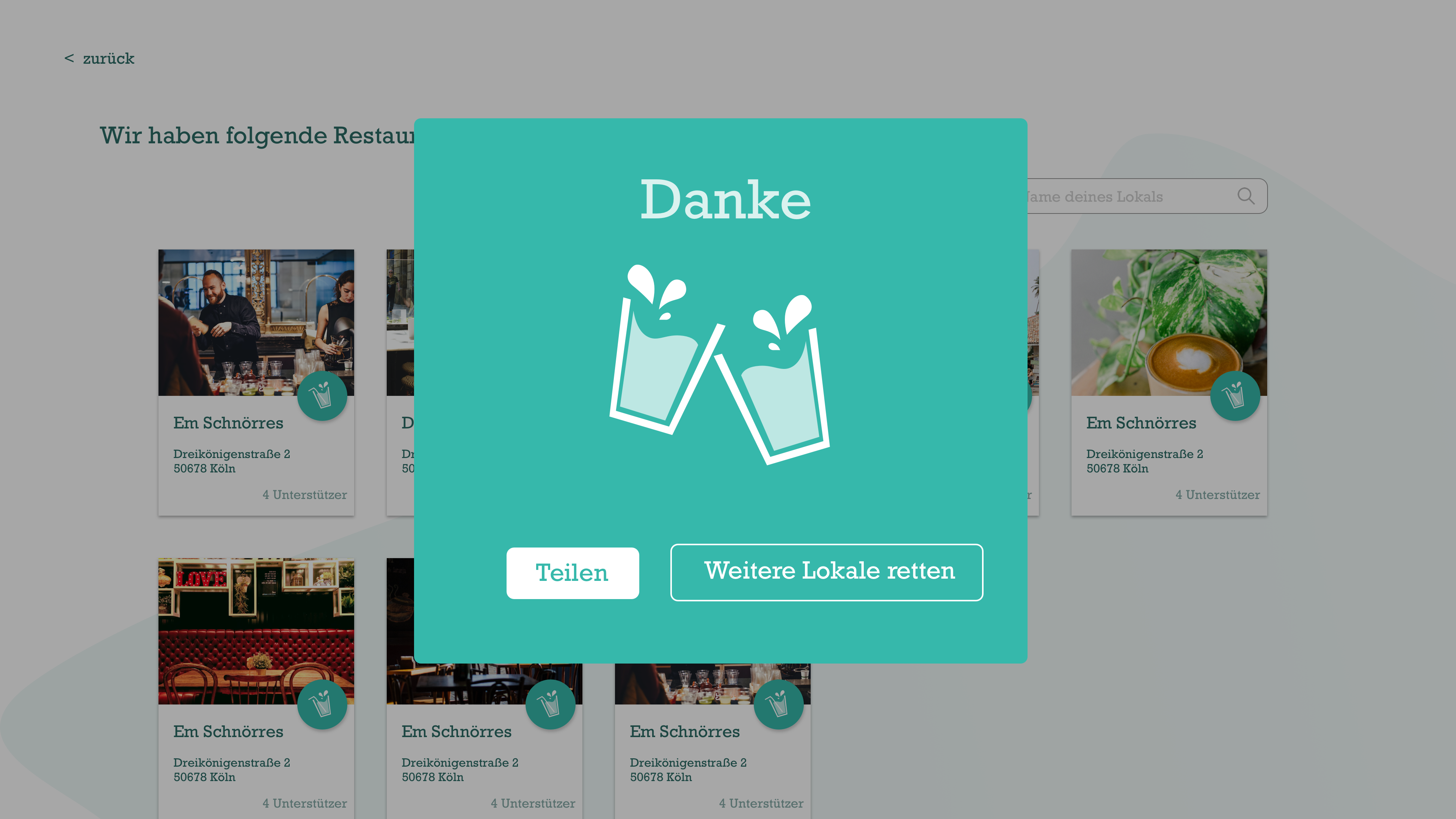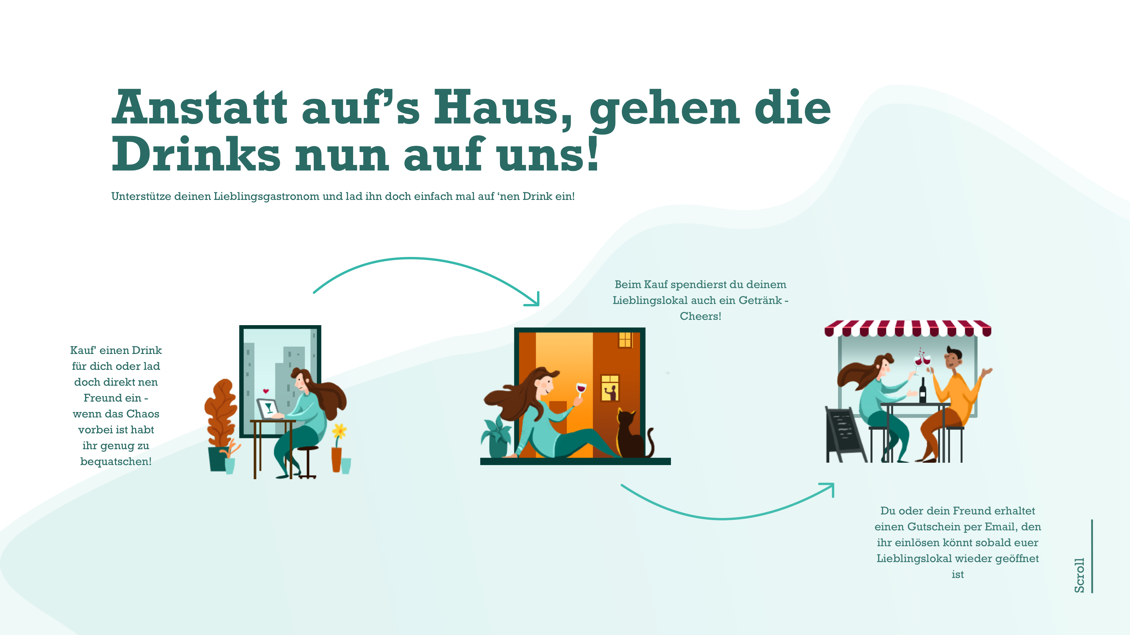 Kauft ein Kunde zum Beispiel ein Getränk bekommt er für das gewünschte Getränk einen Gutschein, den er in einer ruhigeren Lage dann einlösen kann und spendet gleichzeitig auch einen Teil an sein Lieblingslokal, um es zu unterstützen.