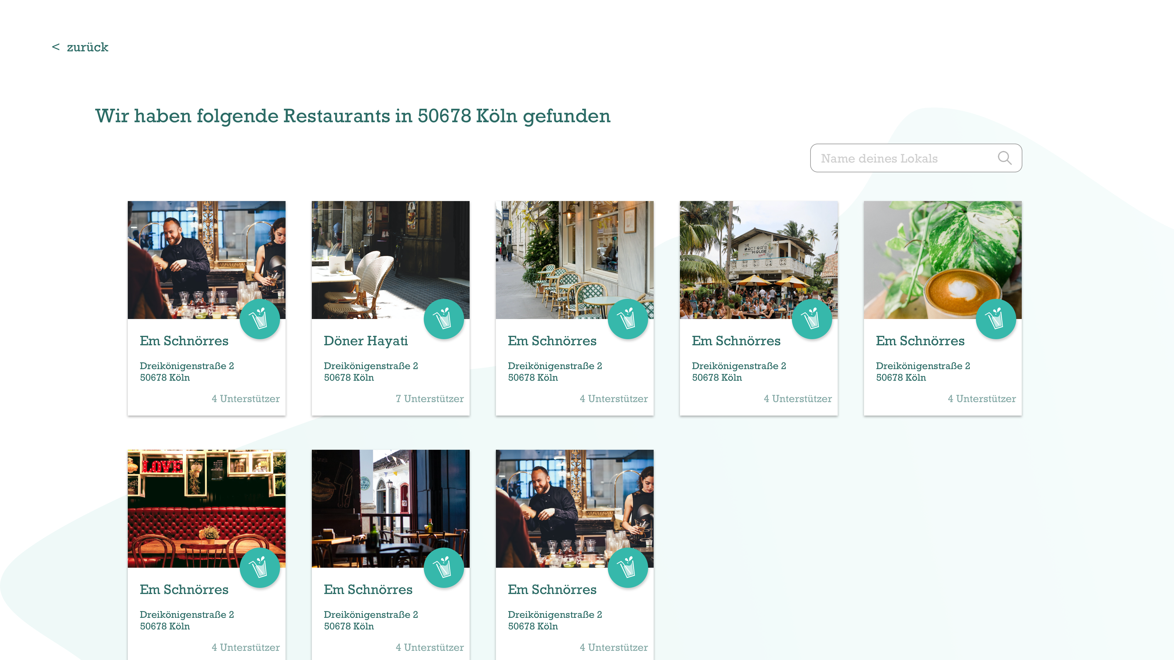 Eine der größten Herausforderungen für uns bestand darin ein User-Interface zu erschaffen, welches keinen der Gastronomen benachteiligt. Besonders die weniger unterstützten Gastronomen sollten in der Restaurant-Suche in den Vordergrund gebracht werden. Zu den weiteren Herausforderungen gehörte es "from-scratch" und ohne Templates ein ansehnliches Webdesign zu designen und umzusetzen. Ein kleiner aber nicht weniger nennenswerter Teil unseres Aufwands bestand außerdem in der Einrichtung von Entwicklungsinfrastruktur für unser Team (Slack, Discord, Kanban-Board, Versionskontrolle).