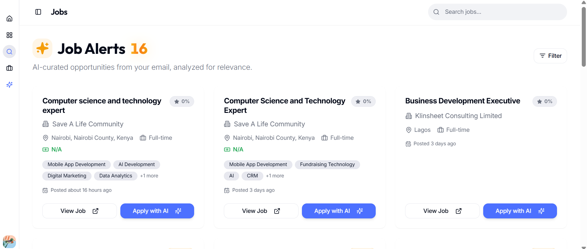 job alerts section to apply with ai
