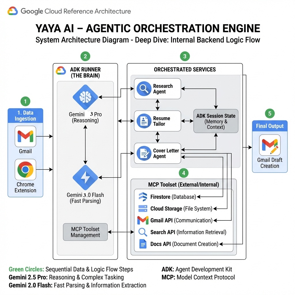 yaya ai system architecture (Gemini 3, Google ADK, MCPs, etc)