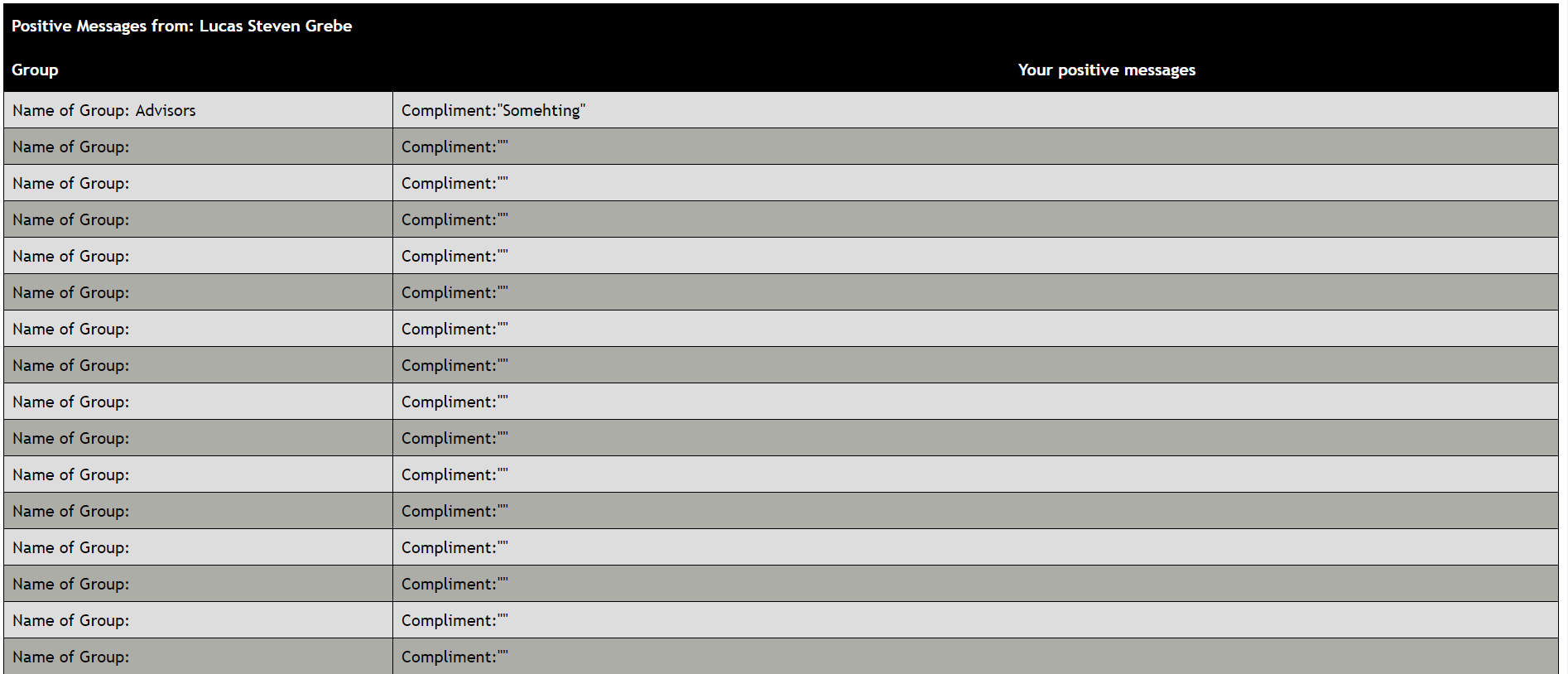 It allows the user to put compliments into a multitude of groups in an organized and efficient, but happy, way.