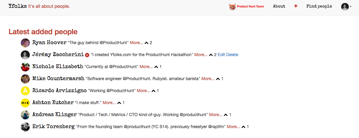 The coolest feature, is that you can post anyone on Yfolks.com - Let me explain, for example you can post a profile for JayZ - If then JayZ join the plateform, he will be the only one to be able to modify his profile (even if he did not created his profile), as the profile is linked with the twitter name (through twitter API), and the only way to login is Twitter.