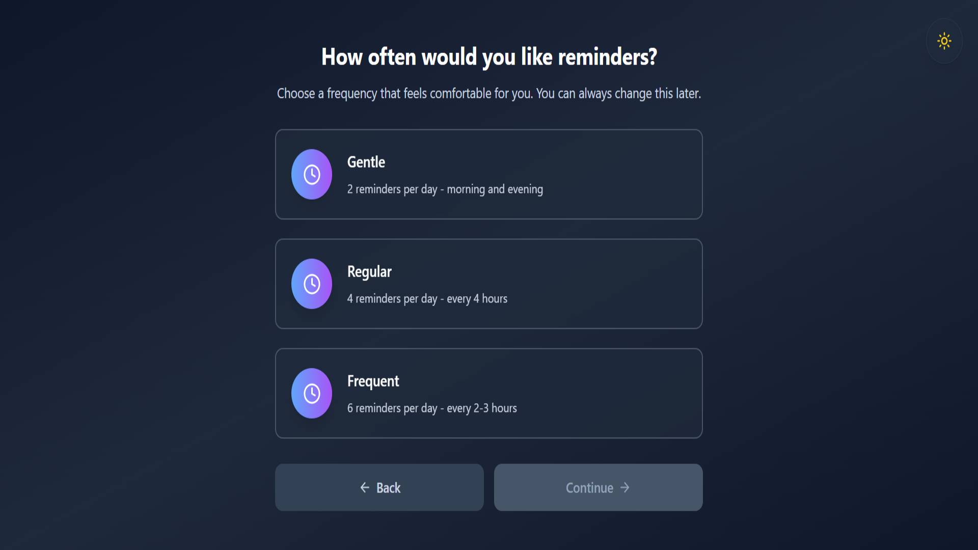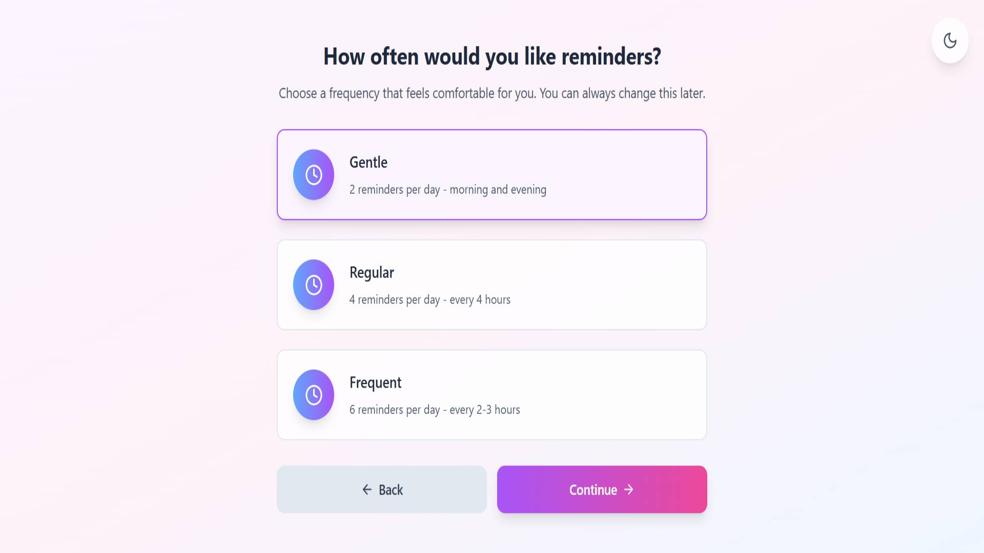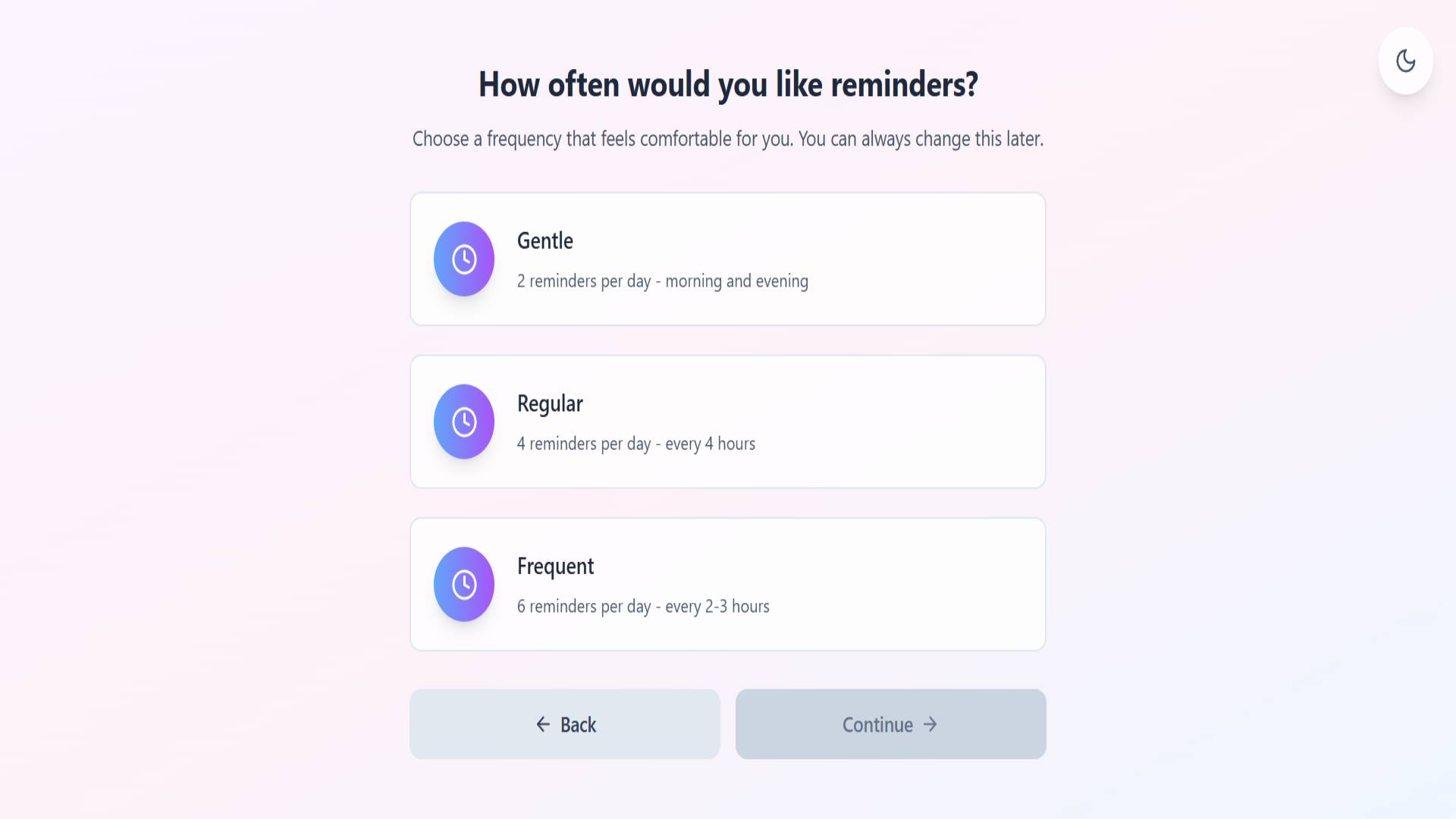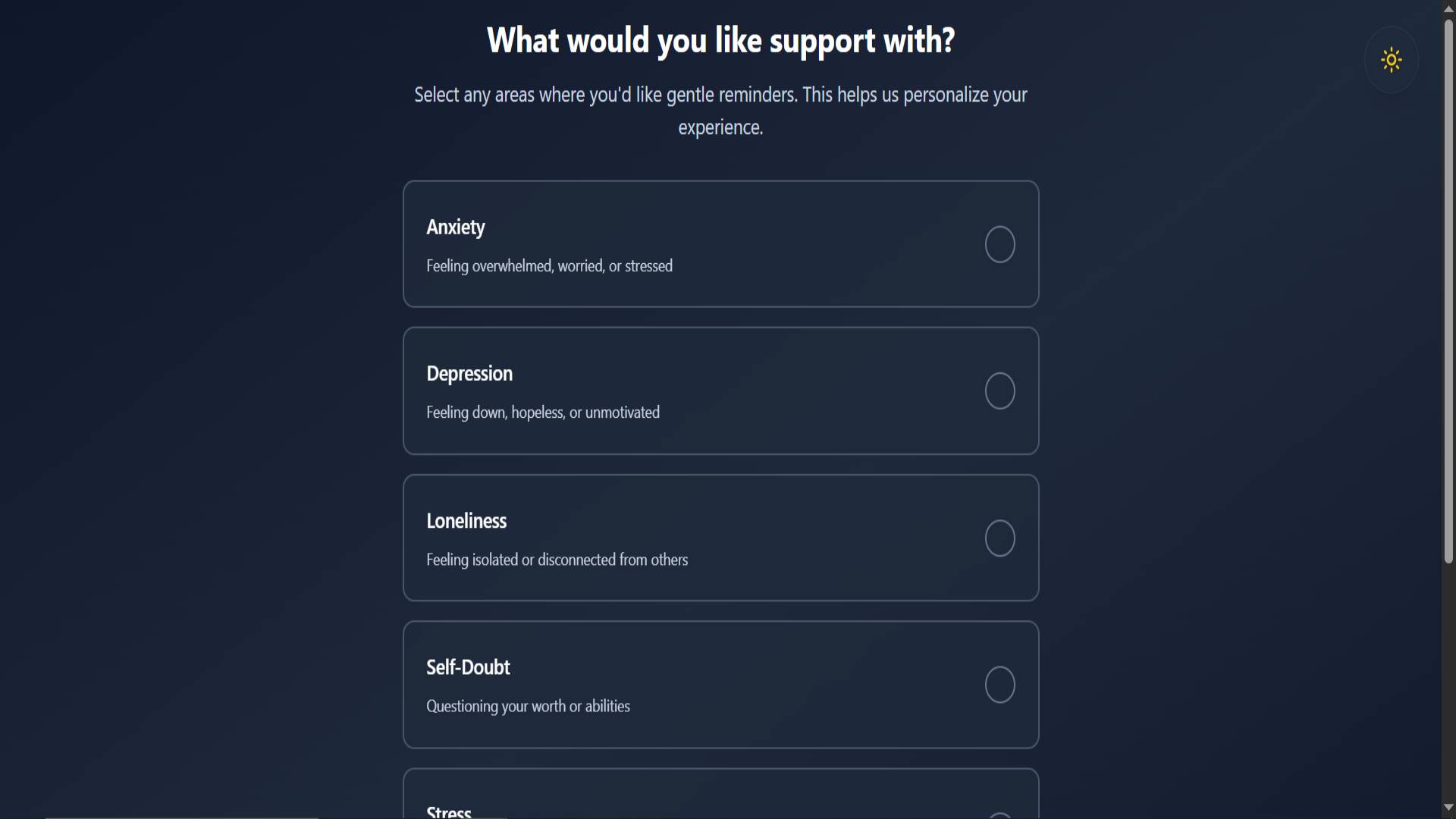 Set up customized reminder schedules based on their personal struggles (anxiety, depression, loneliness)