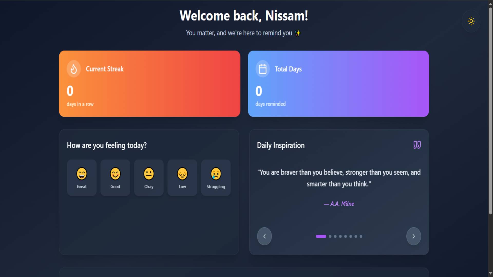 Inspiration: In today's world of social media comparison and rising mental health challenges, I noticed how people struggle with self-worth - quick to comfort friends but harsh on themselves. The inspiration came from realizing that sometimes we just need gentle, consistent reminders that we matter. I wanted to create technology that acts like your own best friend, offering personalized encouragement throughout the day without the complexity of traditional therapy apps.