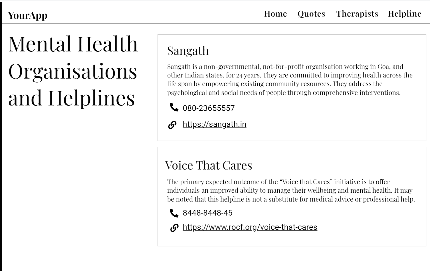 There are several people on this planet, who don't have access to the resources and are not aware about the mental health. This YourApp will help those people to learn about their well being, schedule talk with doctors in no cost.
