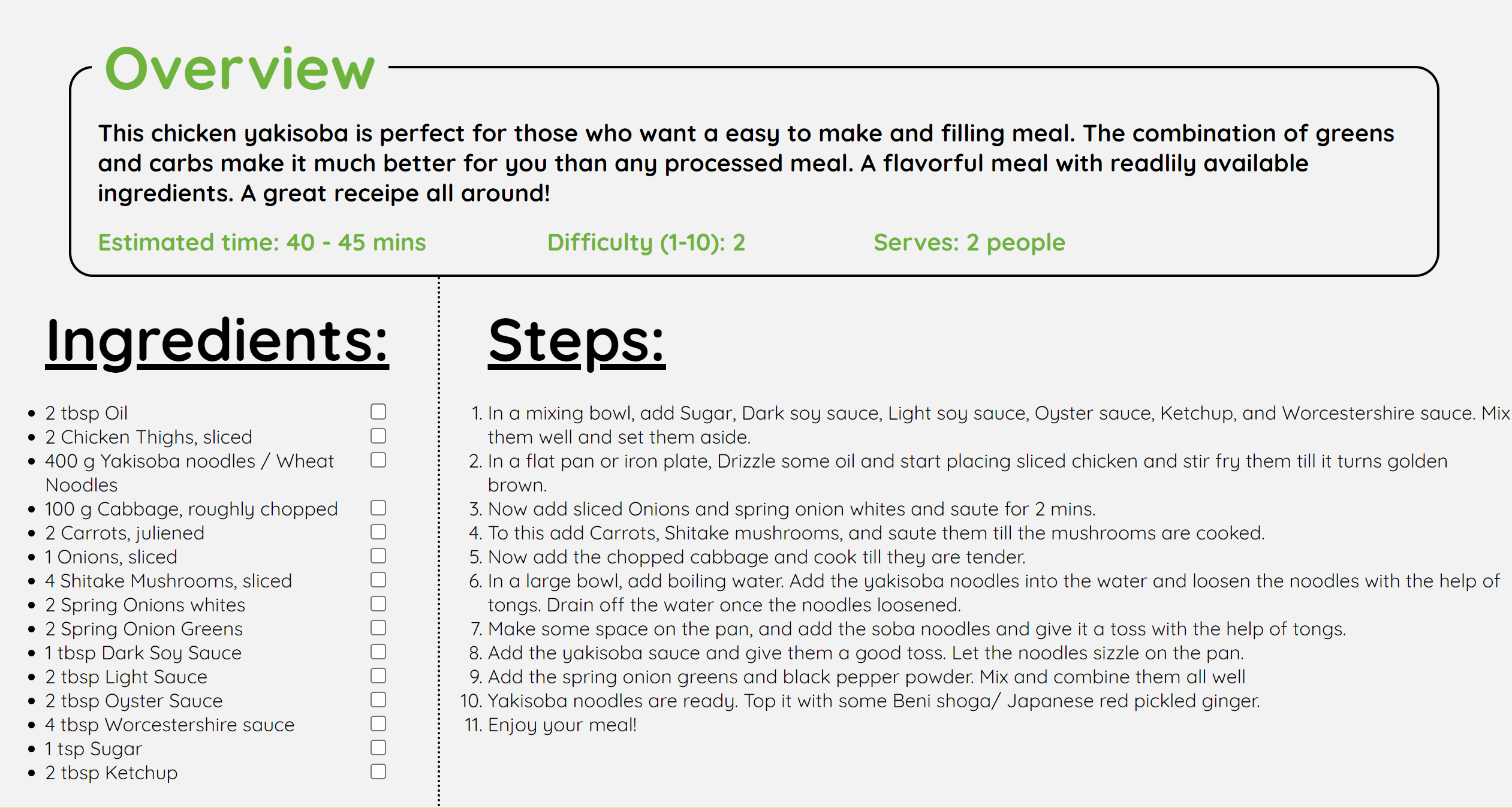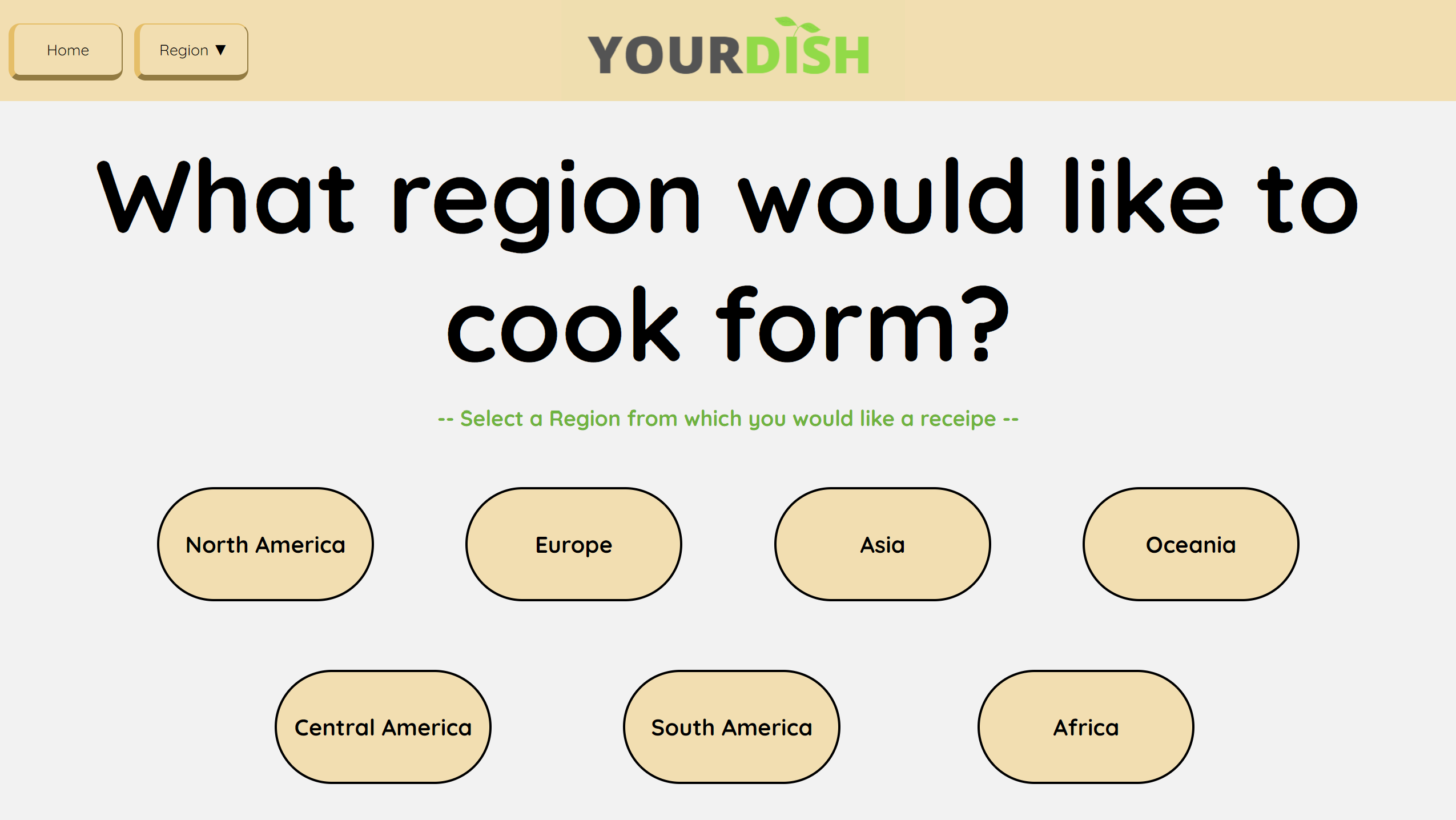 YourDish first presents you with a screen that displays different regions from across the world. Once you select one, it brings you to a page filled with different foods! Hover over them, and you'll see the name of the dish and where it came from. If you click on one of them, it will bring you to a page complete with an overview, step by step process of its creation, ingredient list (With checkboxes to keep track of the ingredients you have), and a video detailing the process visually with the same ingredients.
