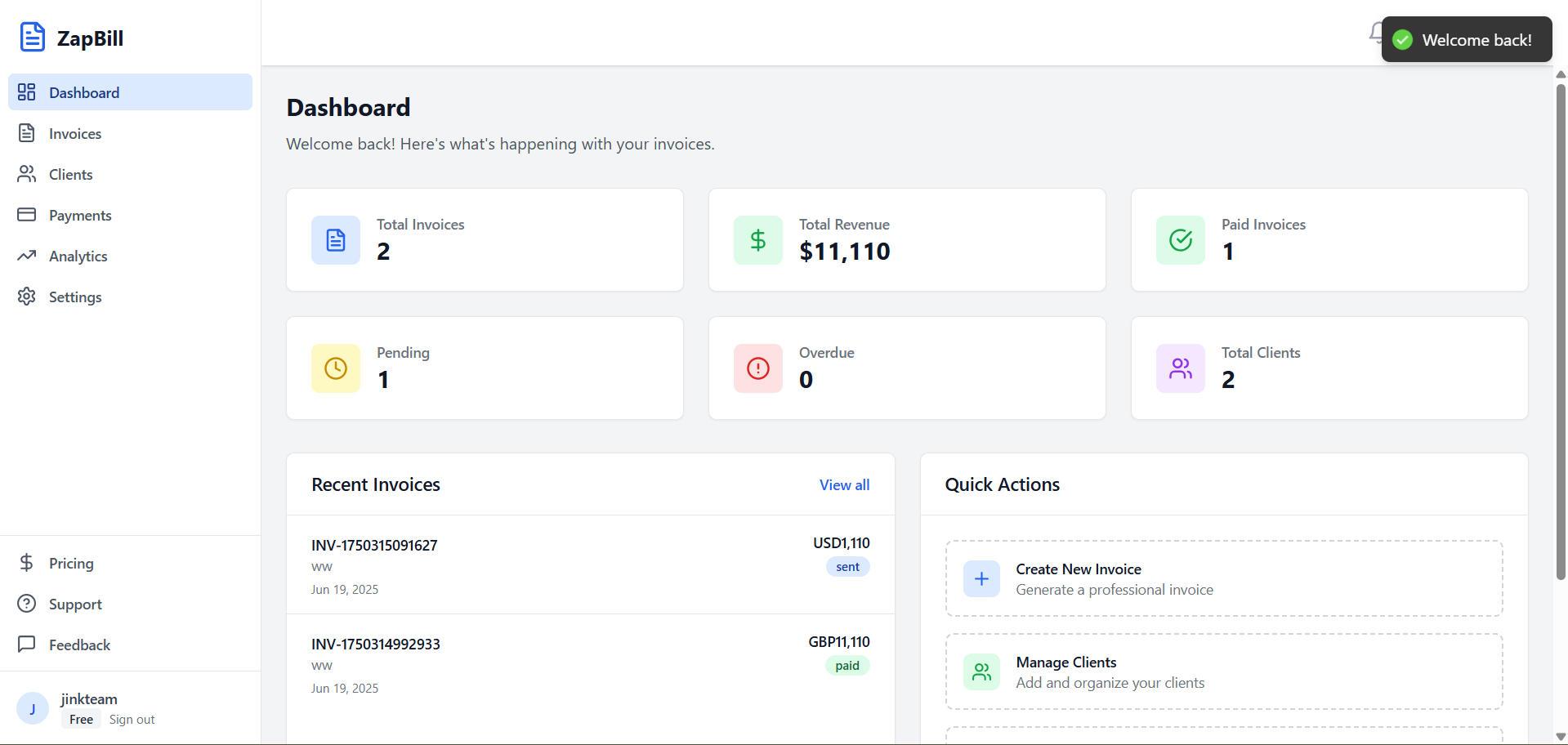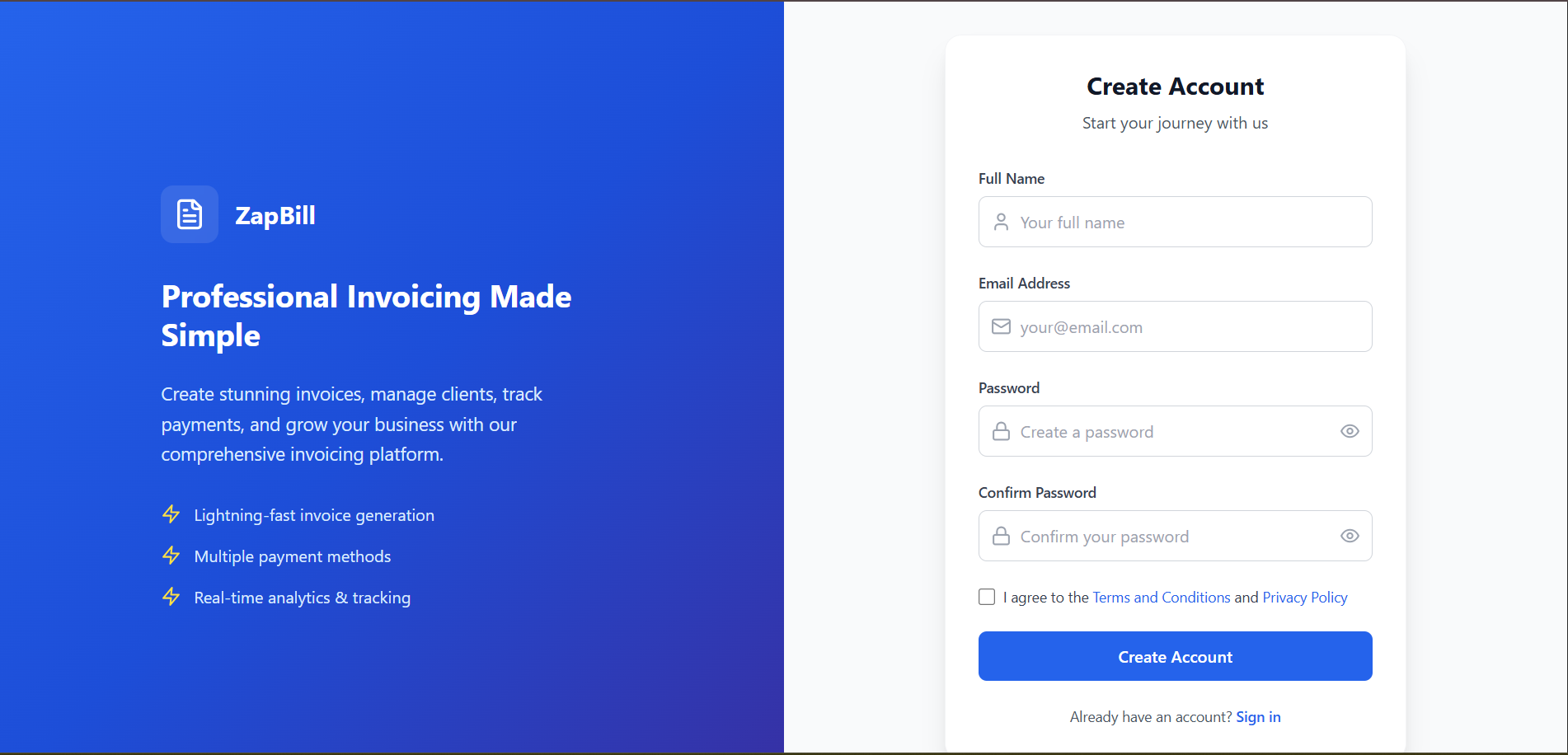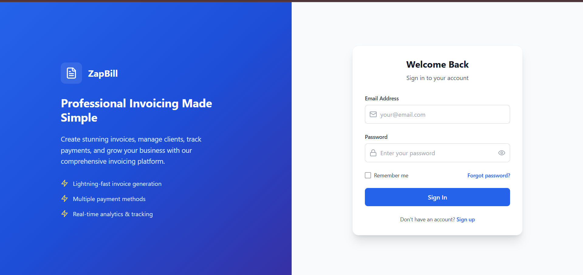🚀 Project Story: ZapBill – Smart Invoicing for Freelancers & Agencies
