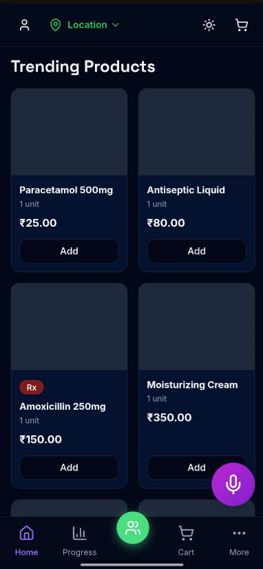 - A voice Feature to order medicines via voice or a single command