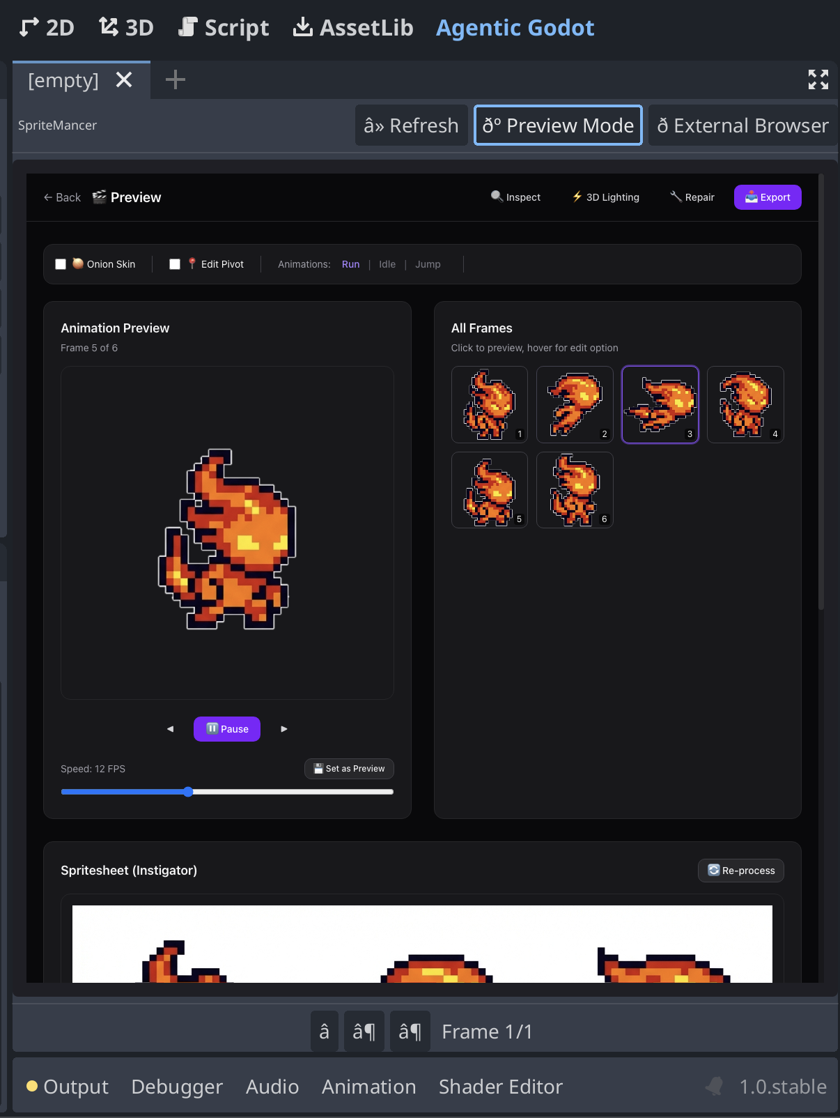 - Animation QA — Rapid visual validation of generated spritesheets before export