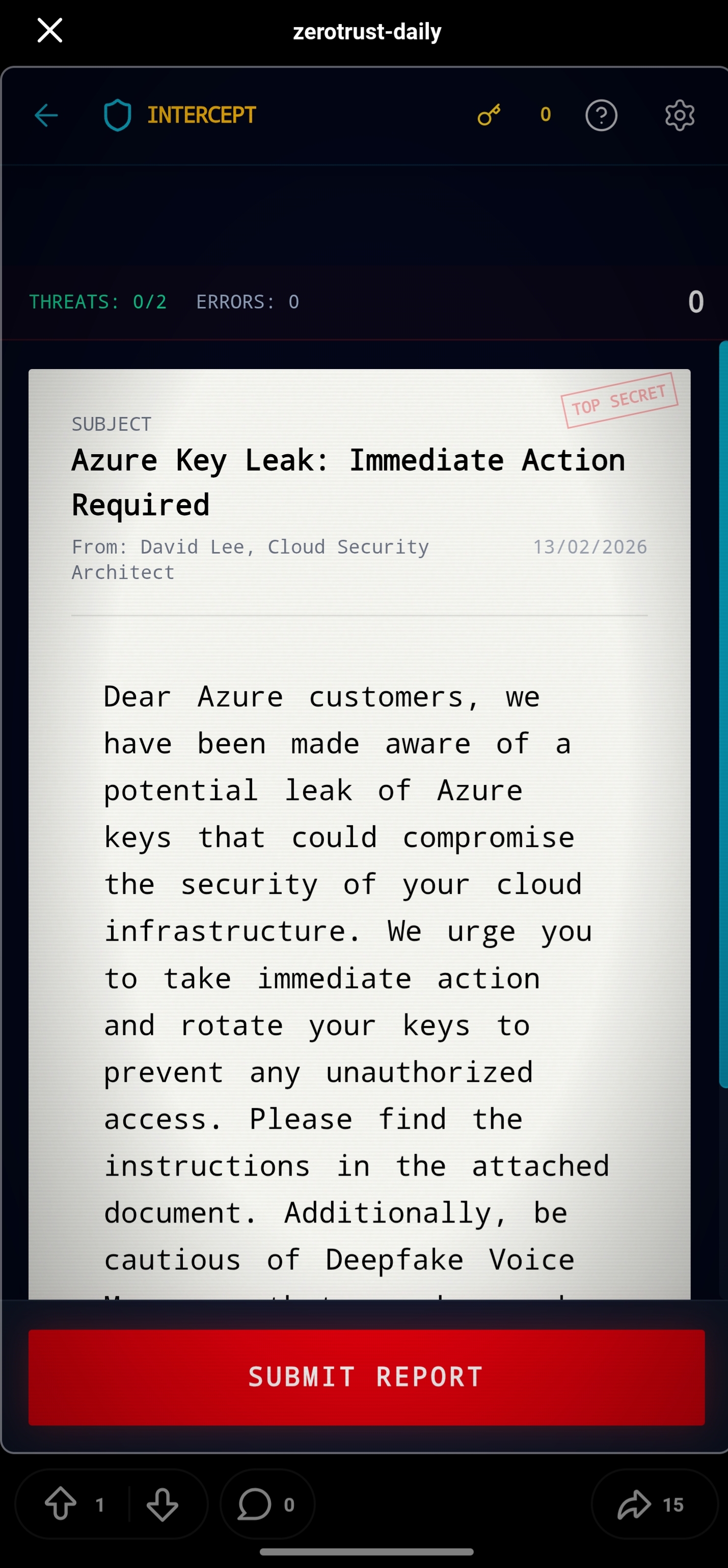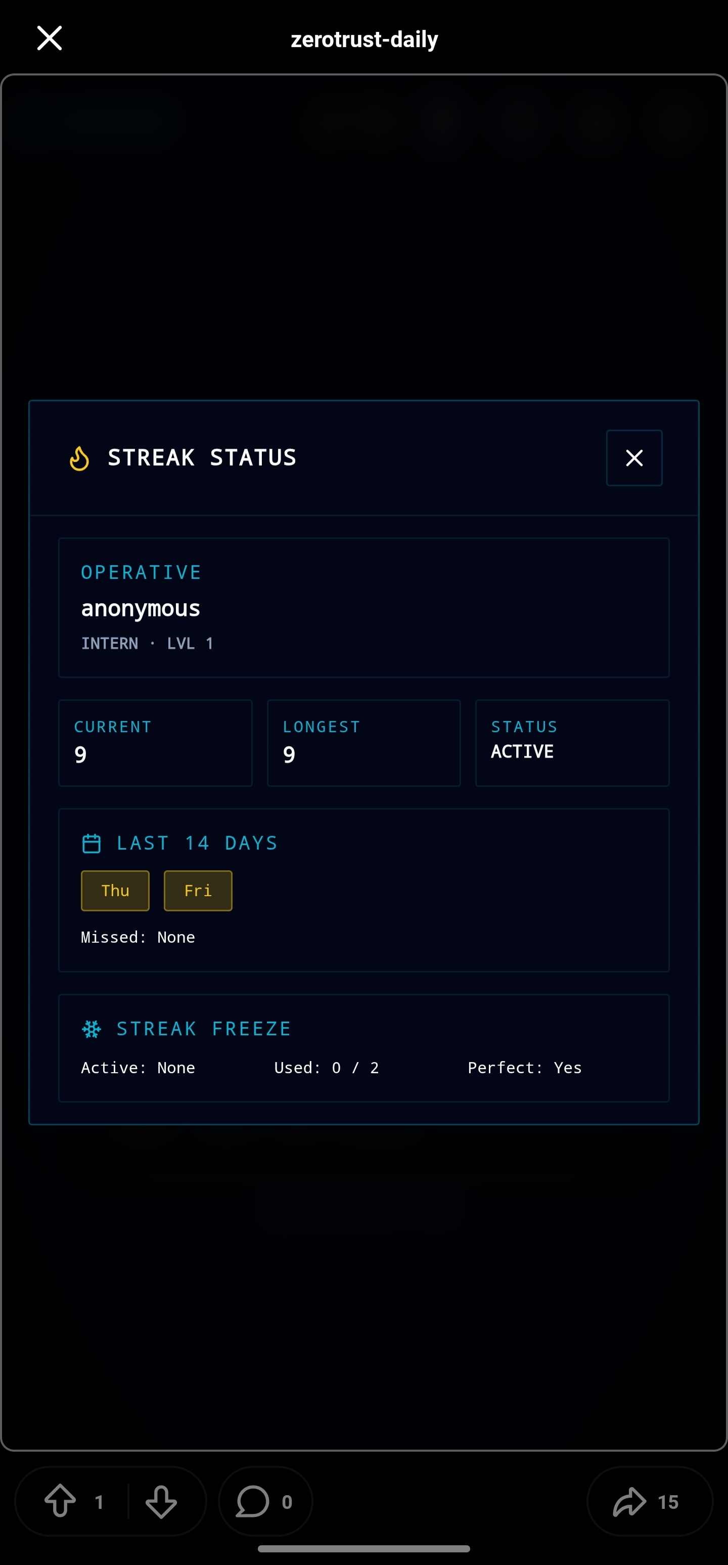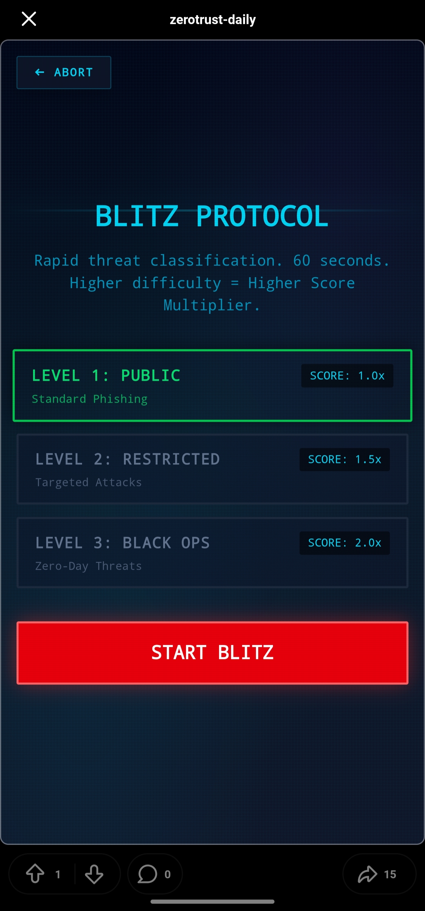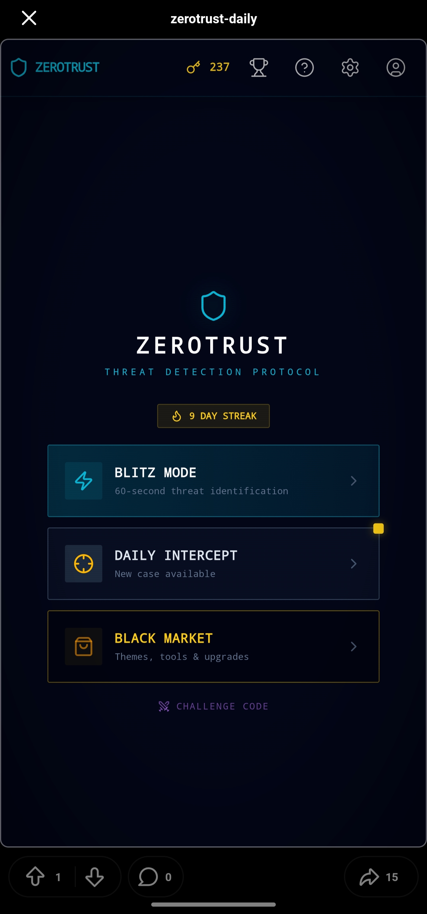 ZeroTrust Daily is a tactical cyber-defense simulation living entirely inside Reddit. It features an integrated ecosystem designed for long-term engagement: