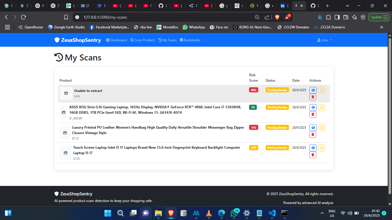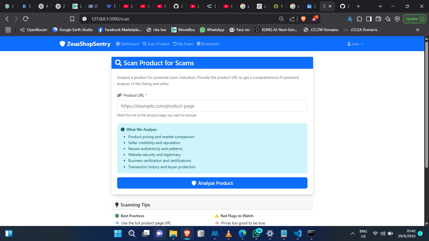 I was scammed a couple of times, the little I had, all I just wanted was to just earn a Standing ground, then I ended up losing everything I had and had to start all over again and again. Online shopping is booming, but so are scams and fake listings. Too many people especially in developing countries fall victim to fraudulent sellers, counterfeit products, and unreliable e-commerce platforms. As a tech-driven solution developer, I wanted to build something that could empower buyers to make smarter, safer online shopping decisions. That's how ZeusShopSentry was born a tool designed to bring transparency, AI-powered risk analysis, and peace of mind into every product link clicked.