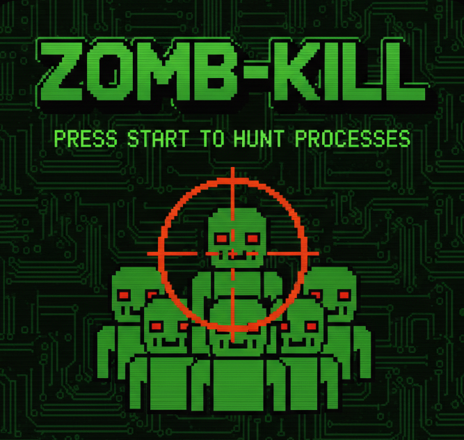 Zomb-Kill is a Python-based gamified dashboard that visualizes your computer's active processes as 8-bit monsters.