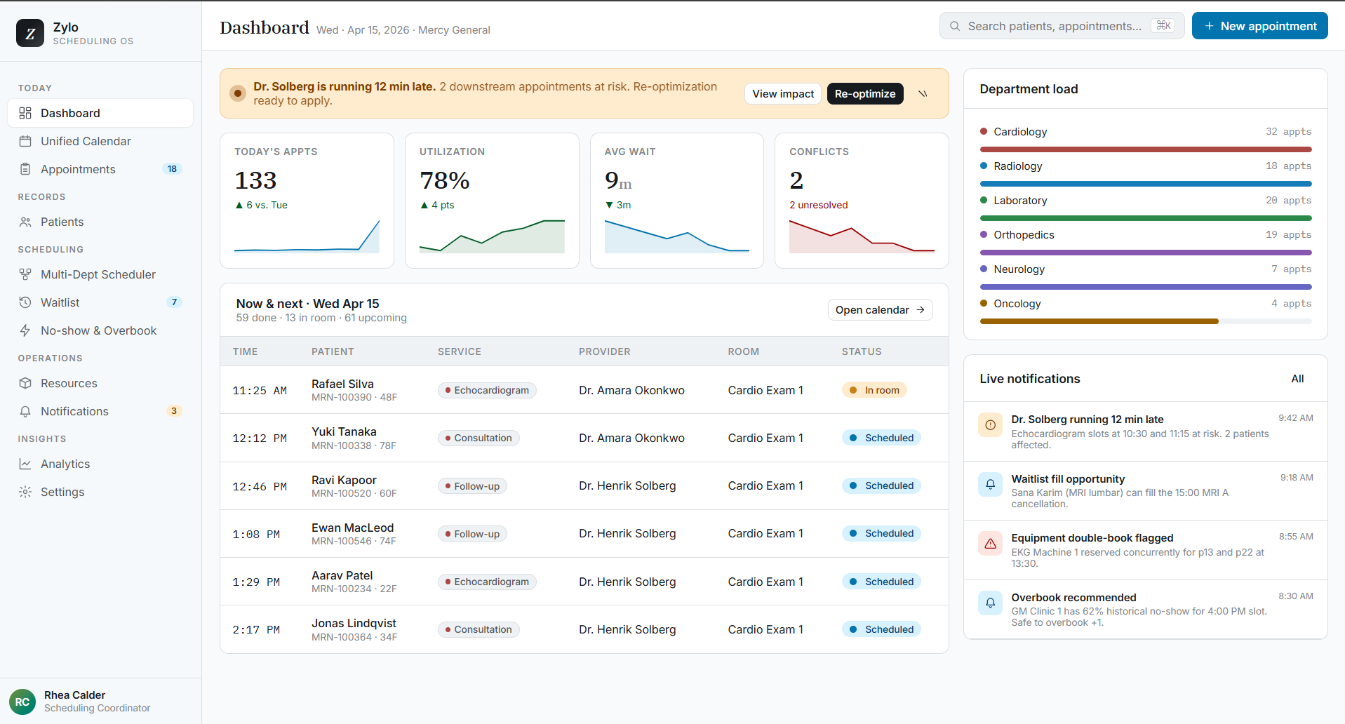 Zylo is an intelligent healthcare scheduling platform that dynamically coordinates patients, providers, departments, and resources in real time.
